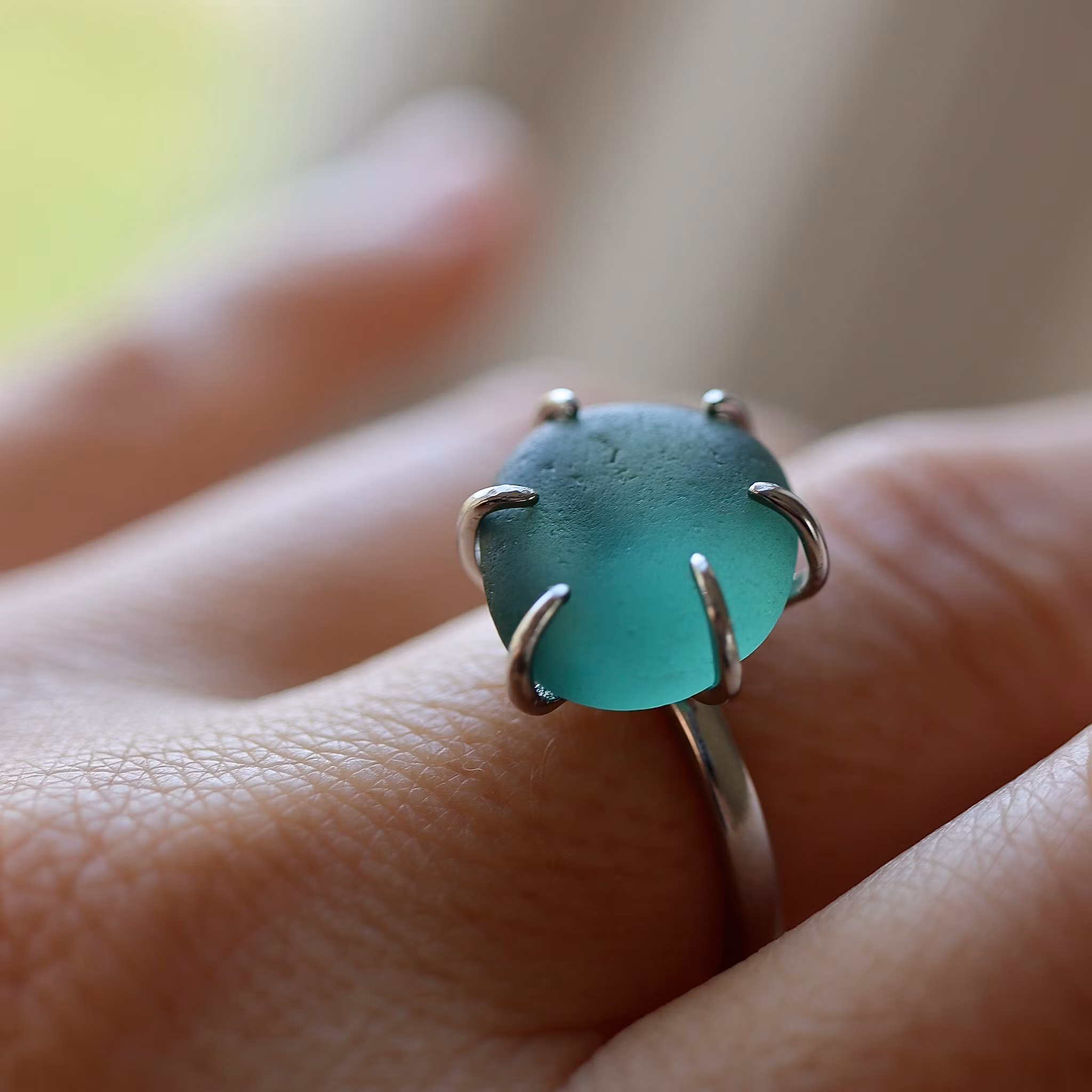 Storlek på havsglaset ca 1,5 x 1,5 cm.