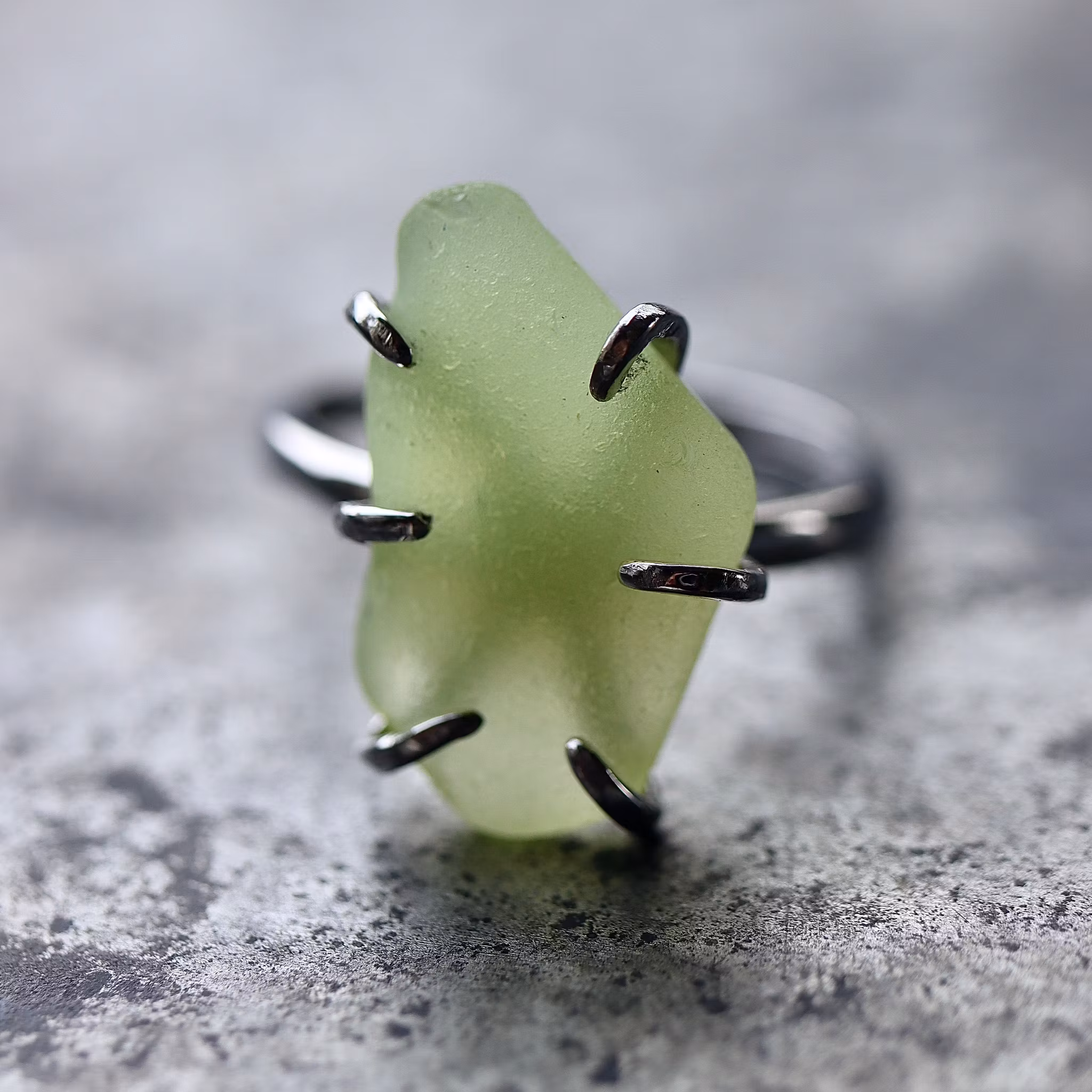 Storlek på havsglaset ca 2 x 1,5 cm. Glaset är uranglas som lyser i UV-belysning.