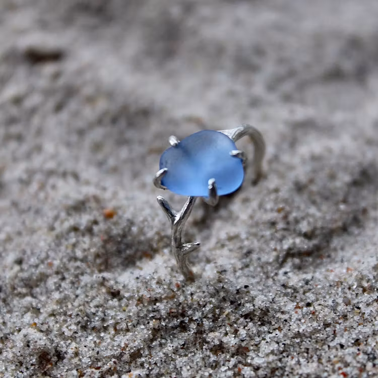 Unikt smycke format av vågor, sand och tid.