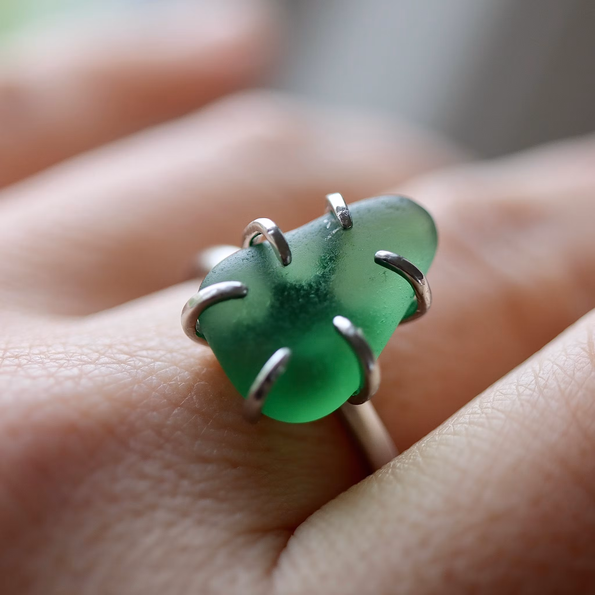 Storlek på havsglaset ca 2 x 1 cm.