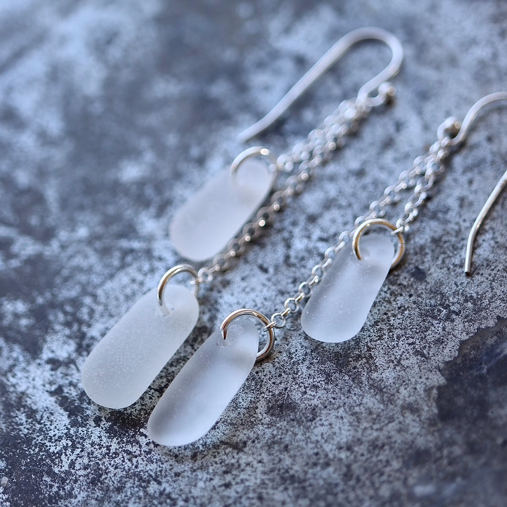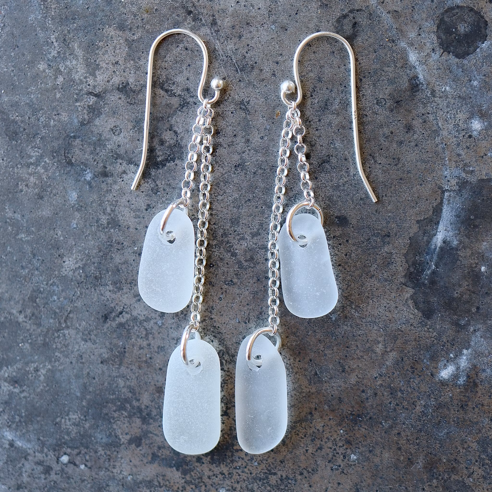 Observera att havsglasbitarna i paret inte är identiska, utan varierar en aning i form, tjocklek och färgnyans.