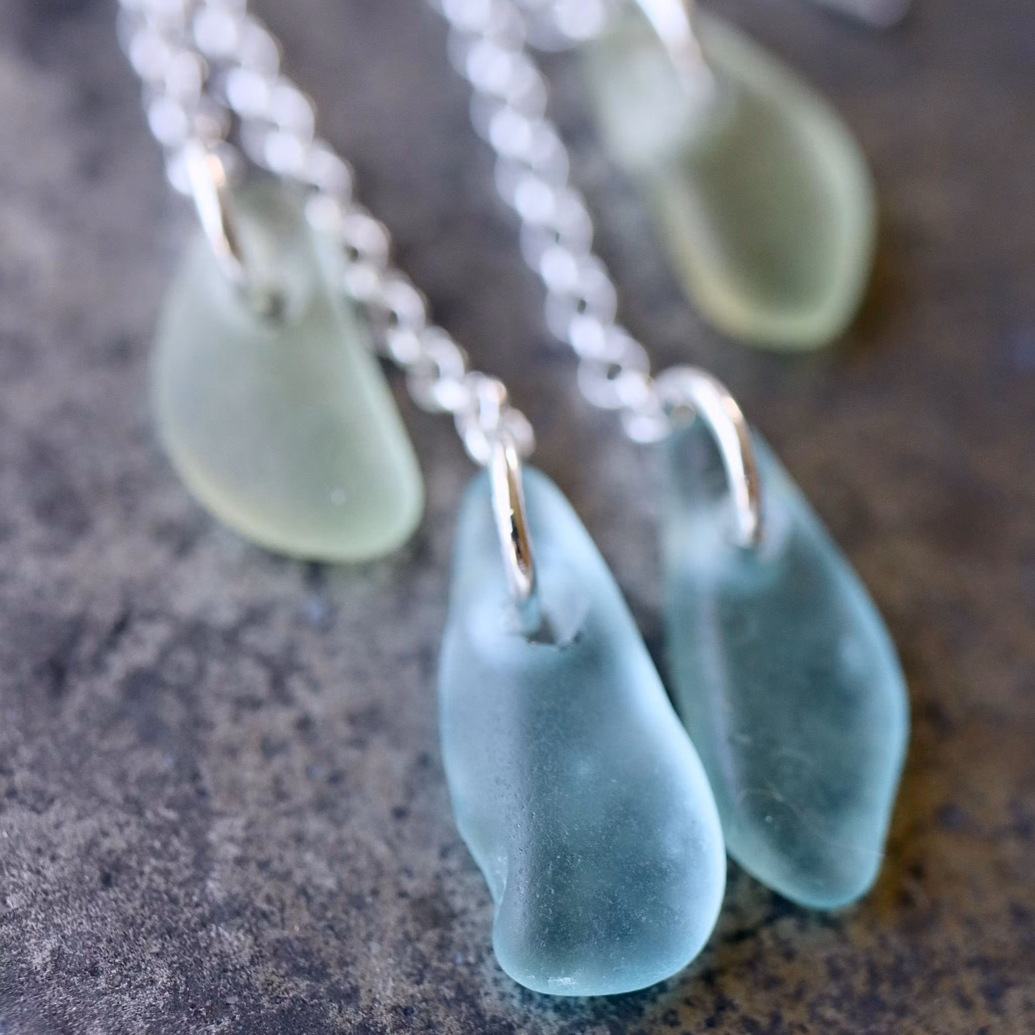 Observera att havsglasbitarna i paret inte är identiska, utan varierar en aning i form, tjocklek och färgnyans.