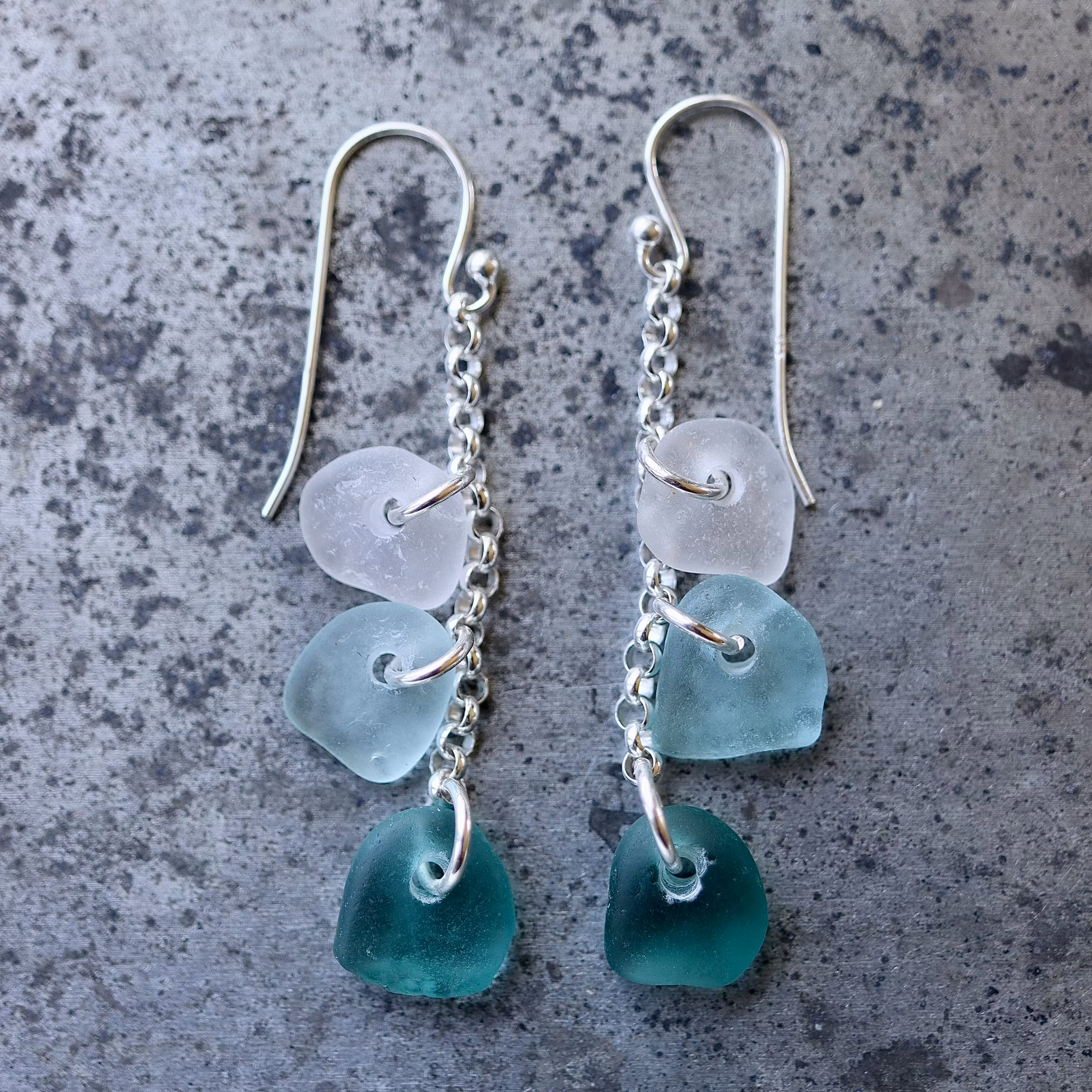 Par med sex matchande havsglas, örkrokar och kedja av äkta silver.