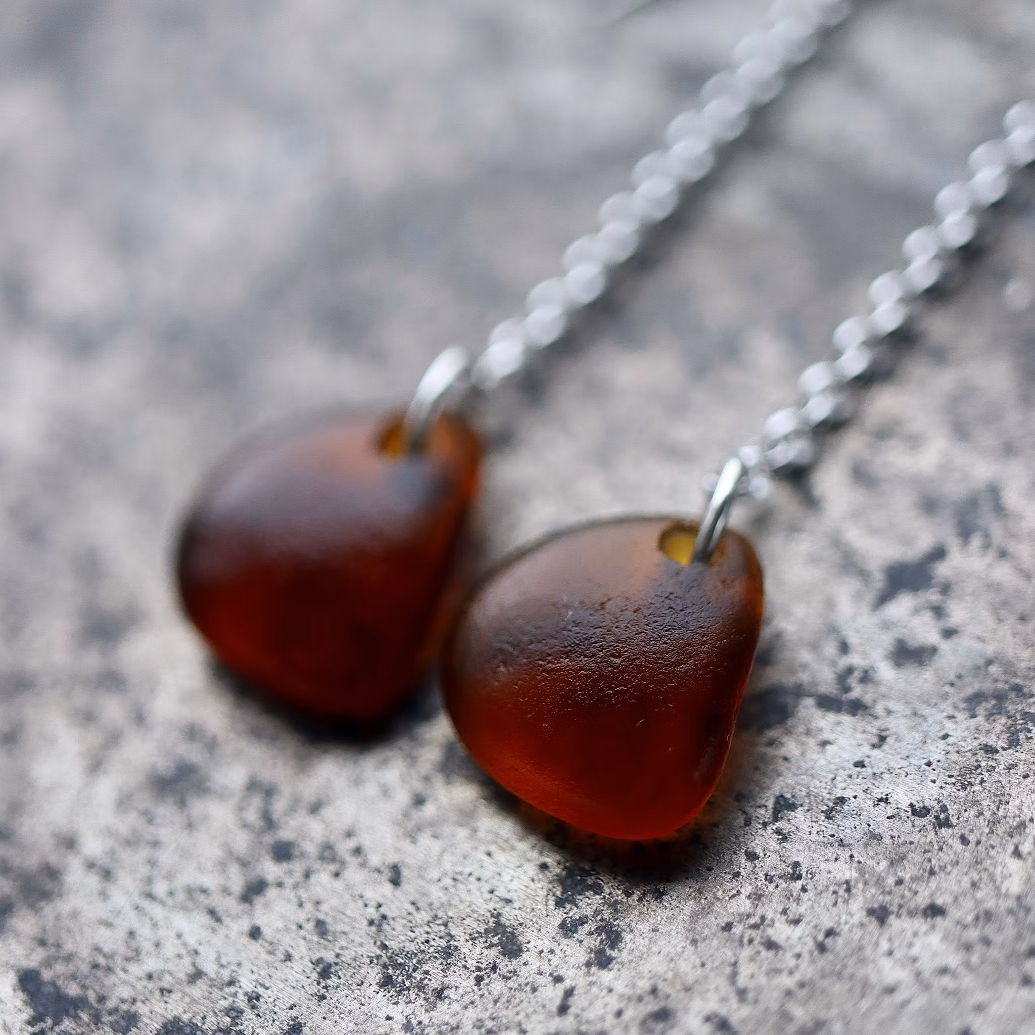 Observera att de två havsglasbitarna i paret inte är identiska, utan varierar en aning i form, tjocklek och färgnyans.
