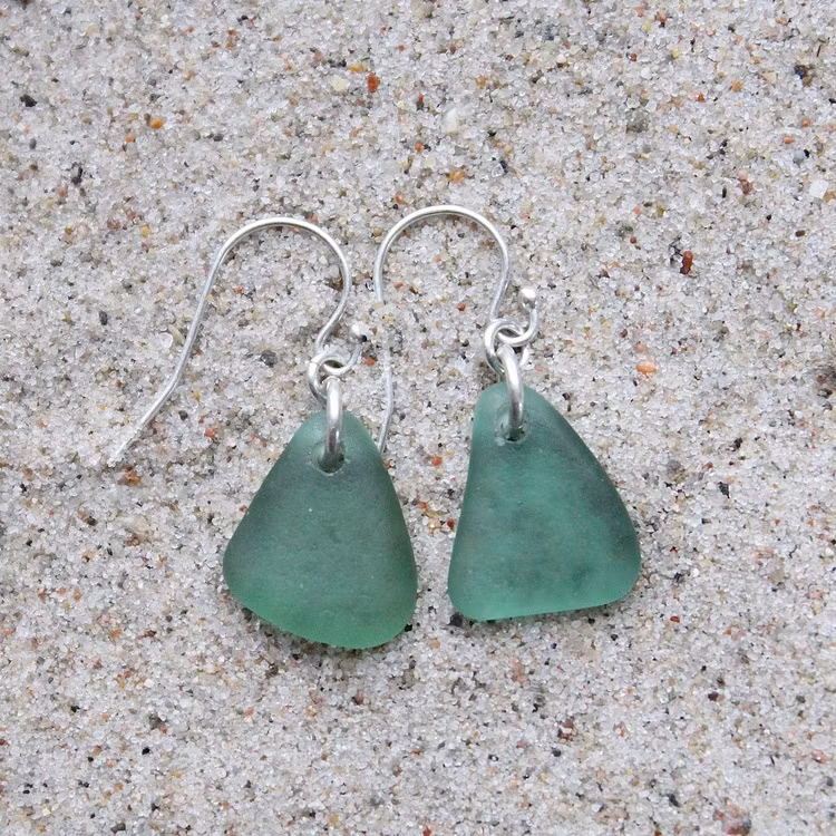 Observera att de två havsglasbitarna i paret inte är identiska, utan varierar en aning i form, tjocklek och färgnyans.