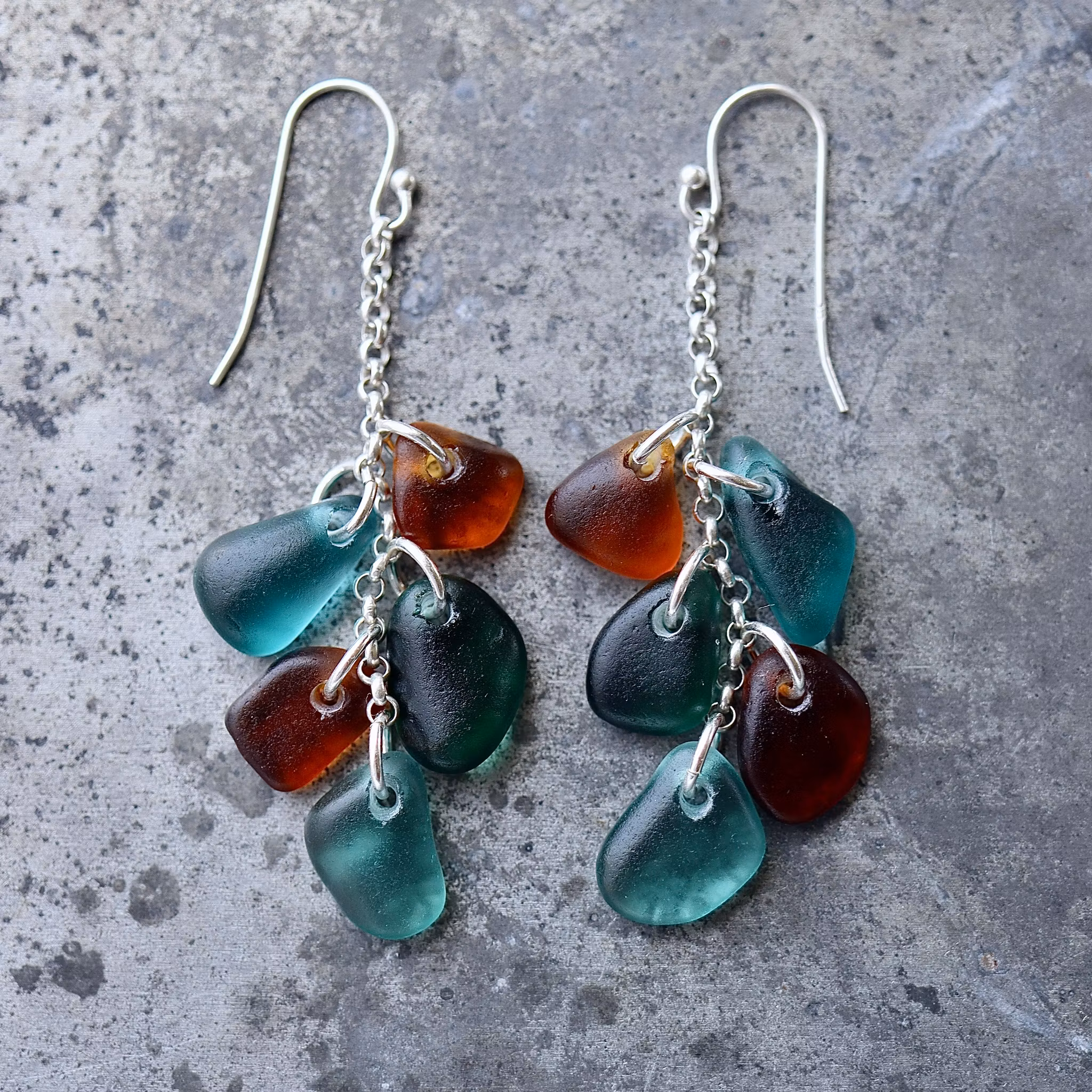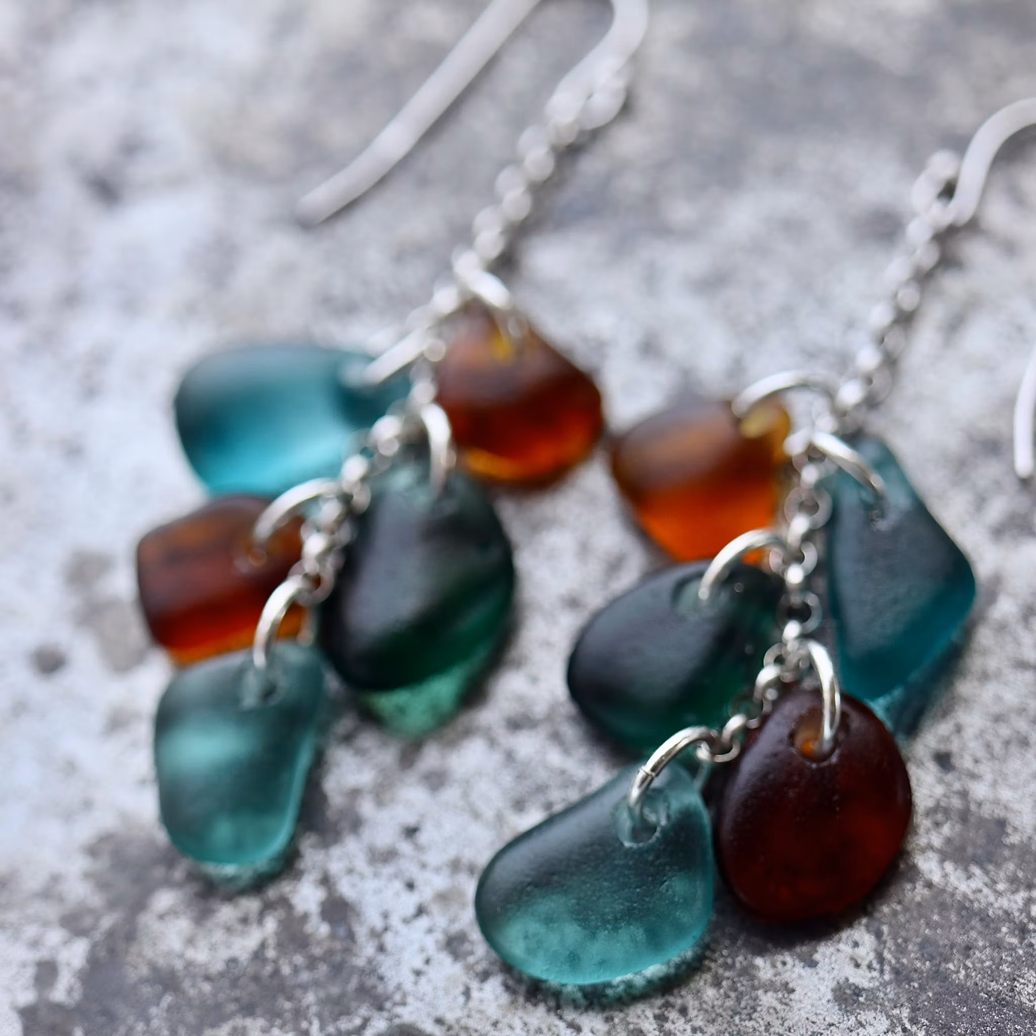 Observera att havsglasbitarna i paret inte är identiska, utan varierar en aning i form, tjocklek och färgnyans.