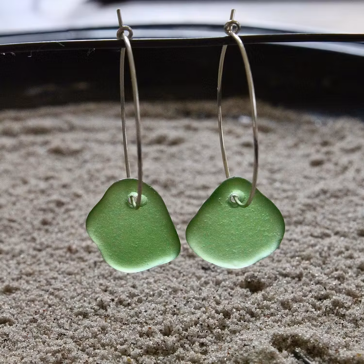 Observera att de två havsglasbitarna i paret inte är identiska, utan varierar en aning i form, tjocklek och färgnyans.