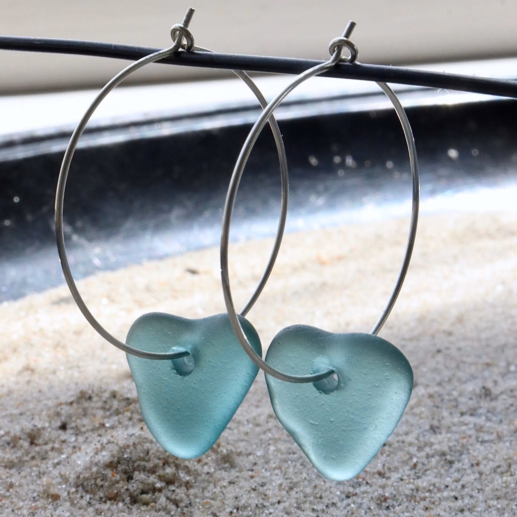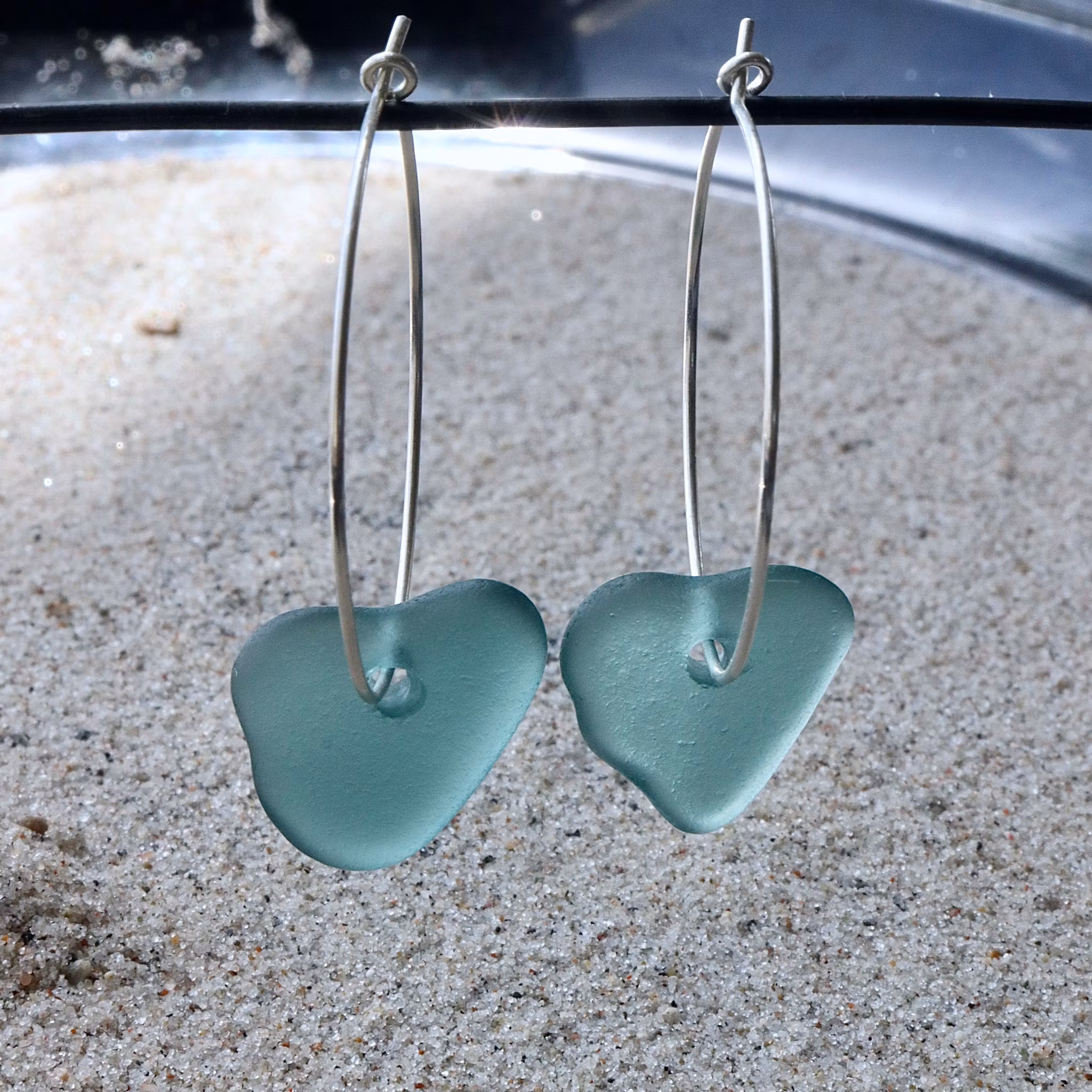 Observera att de två havsglasbitarna i paret inte är identiska, utan varierar en aning i form, tjocklek och färgnyans.