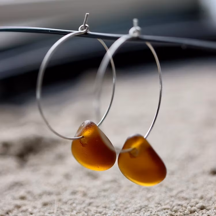 Observera att de två havsglasbitarna i paret inte är identiska, utan varierar en aning i form, tjocklek och färgnyans.