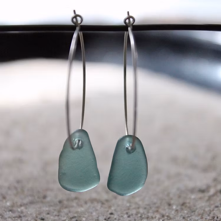 Observera att de två havsglasbitarna i paret inte är identiska, utan varierar en aning i form, tjocklek och färgnyans.