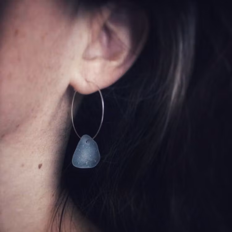 Observera att de två havsglasbitarna i paret inte är identiska, utan varierar en aning i form, tjocklek och färgnyans.
