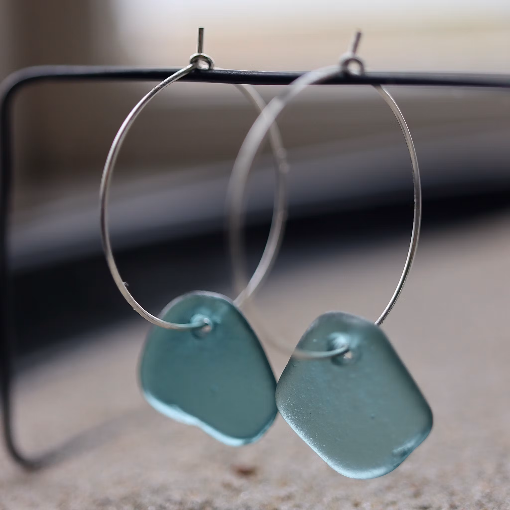 Observera att de två havsglasbitarna i paret inte är identiska, utan varierar en aning i form, tjocklek och färgnyans.