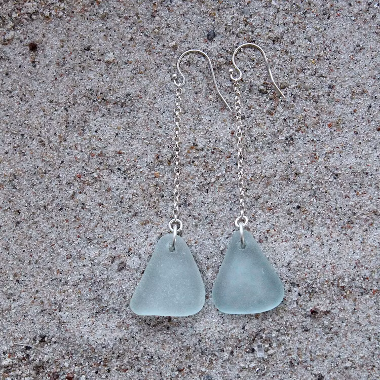 Observera att de två havsglasbitarna i paret inte är identiska, utan varierar en aning i form, tjocklek och färgnyans.