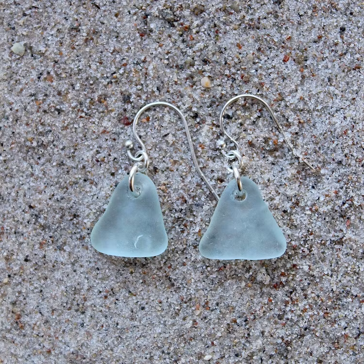Observera att de två havsglasbitarna i paret inte är identiska, utan varierar en aning i form, tjocklek och färgnyans.