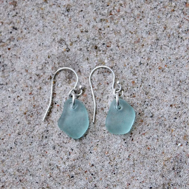 Observera att de två havsglasbitarna i paret inte är identiska, utan varierar en aning i form, tjocklek och färgnyans.