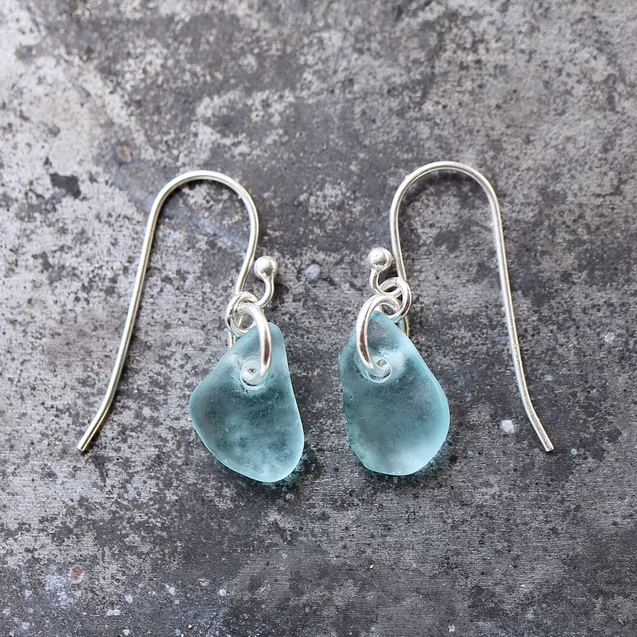 Observera att de två havsglasbitarna i paret inte är identiska, utan varierar en aning i form, tjocklek och färgnyans.