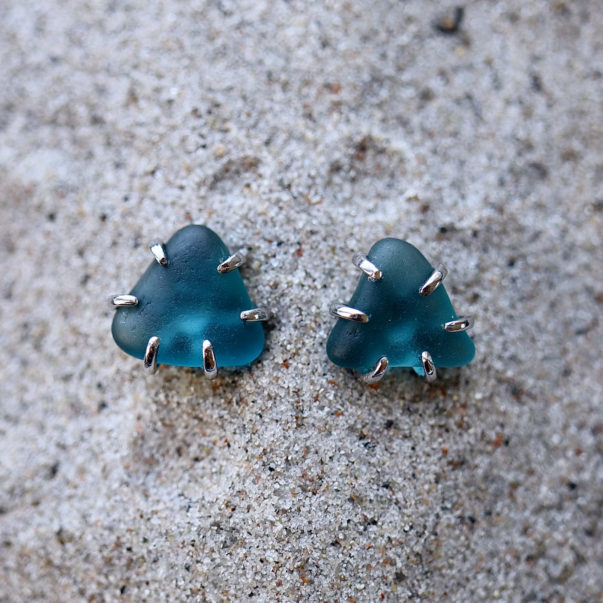 Observera att de två havsglasbitarna i paret inte är identiska, utan varierar en aning i form, tjocklek och färgnyans.