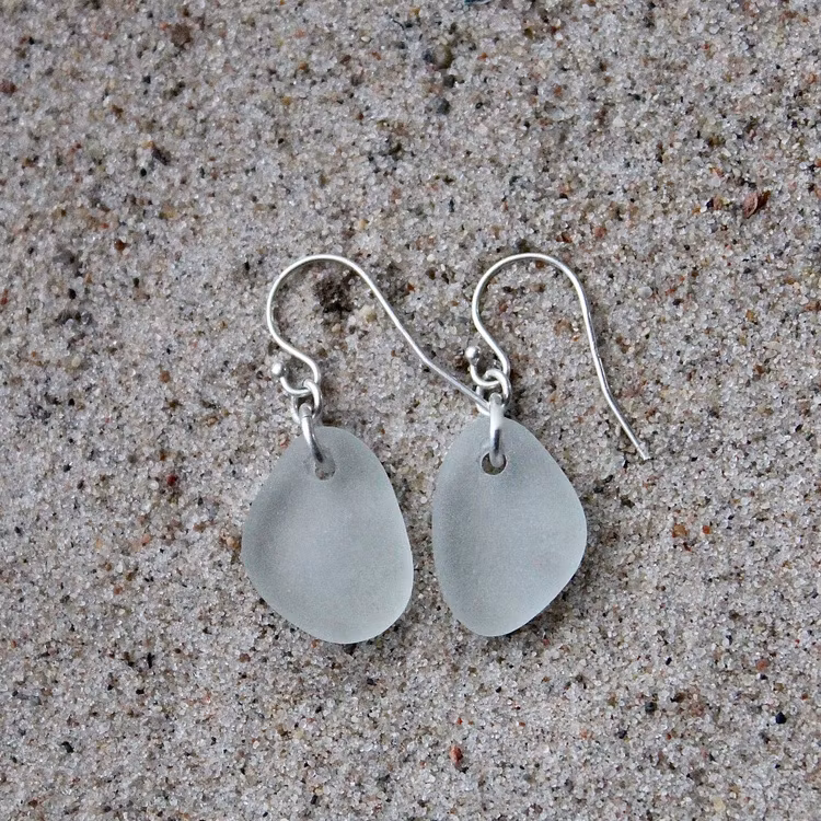 Observera att de två havsglasbitarna i paret inte är identiska, utan varierar en aning i form, tjocklek och färgnyans.