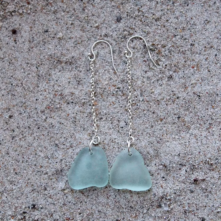 Observera att de två havsglasbitarna i paret inte är identiska, utan varierar en aning i form, tjocklek och färgnyans.