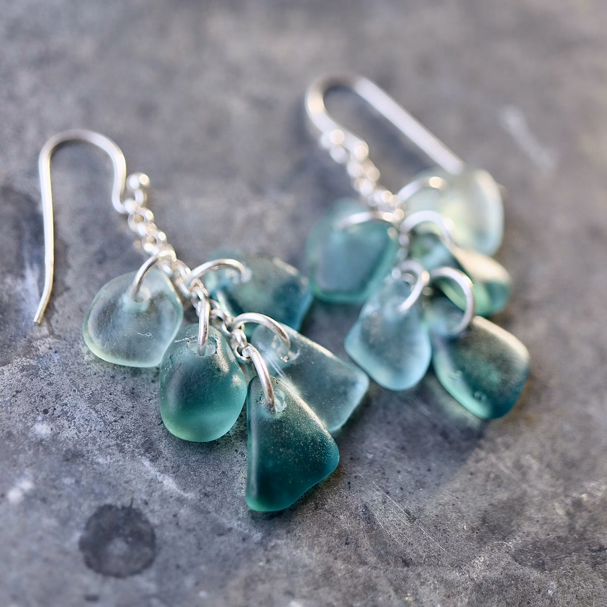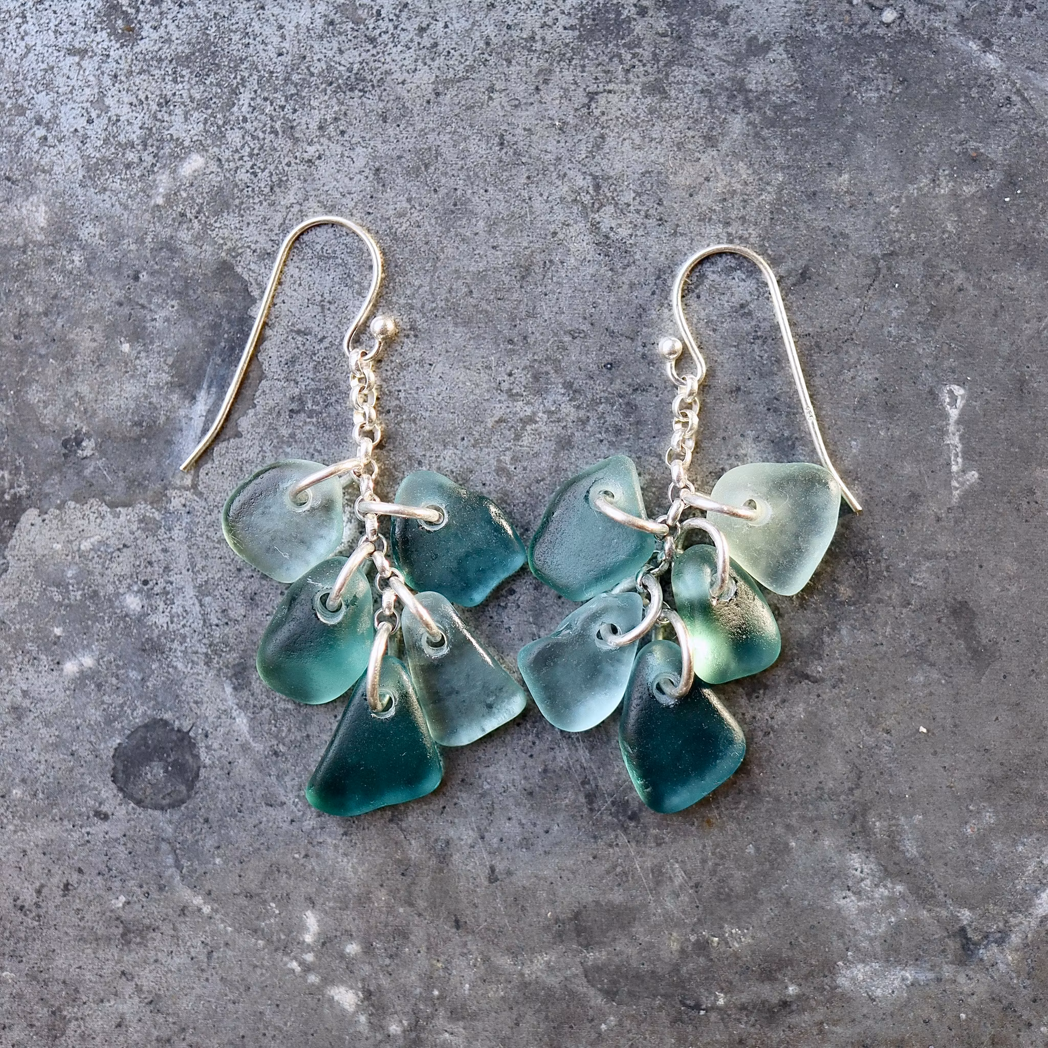 Observera att havsglasbitarna i paret inte är identiska, utan varierar en aning i form, tjocklek och färgnyans.