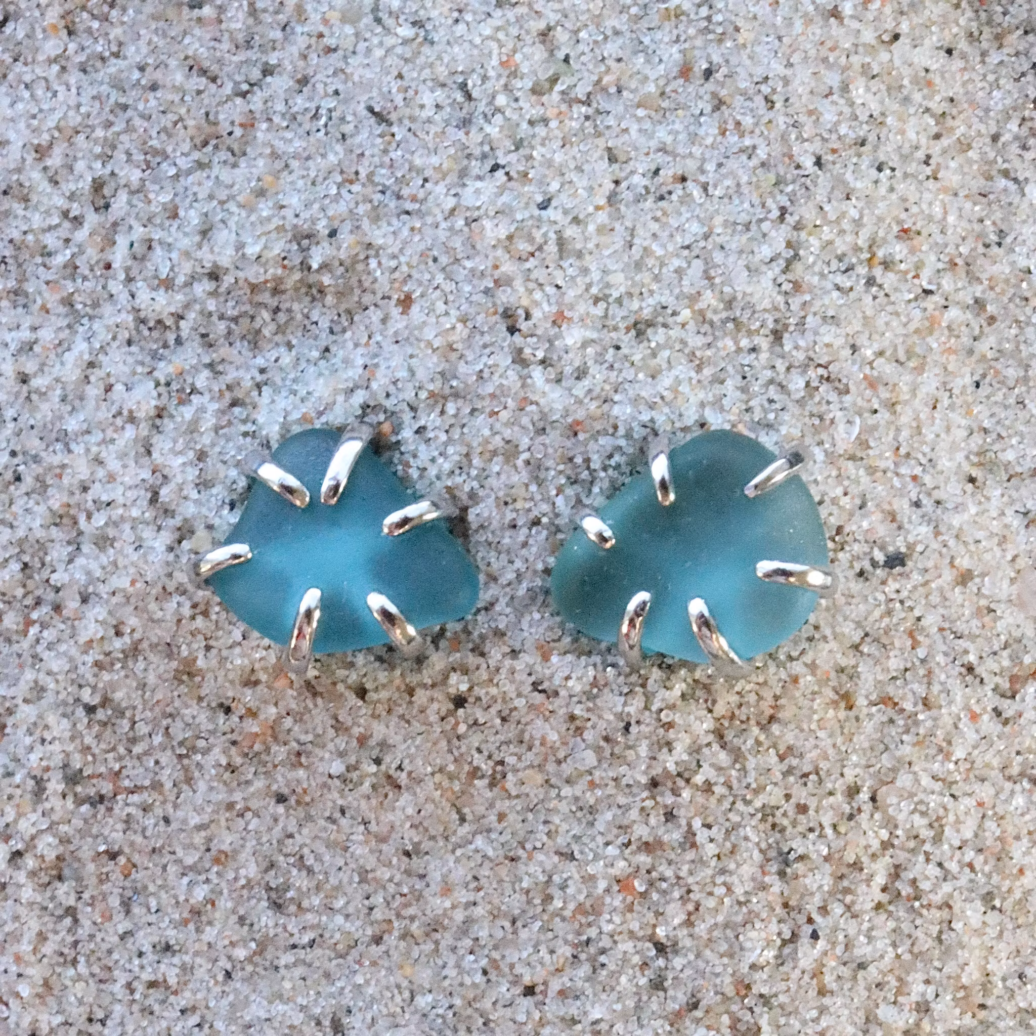 Observera att de två havsglasbitarna i paret inte är identiska, utan varierar en aning i form, tjocklek och färgnyans.