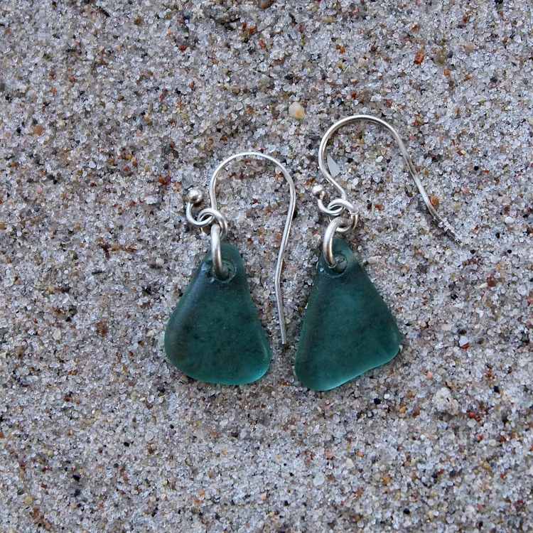 Observera att de två havsglasbitarna i paret inte är identiska, utan varierar en aning i form, tjocklek och färgnyans.