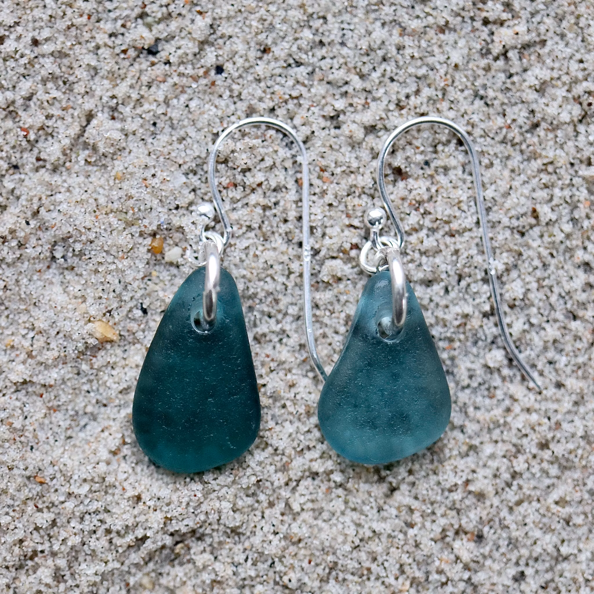 Observera att de två havsglasbitarna i paret inte är identiska, utan varierar en aning i form, tjocklek och färgnyans.
