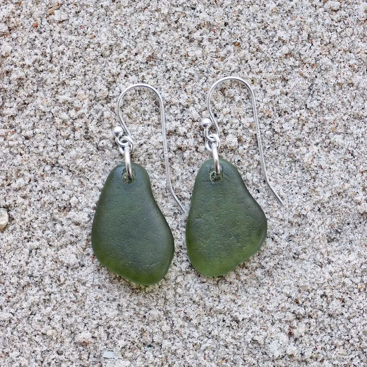Observera att de två havsglasbitarna i paret inte är identiska, utan varierar en aning i form, tjocklek och färgnyans.