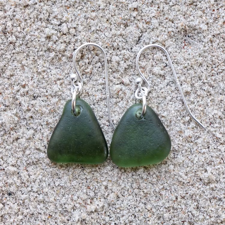 Observera att de två havsglasbitarna i paret inte är identiska, utan varierar en aning i form, tjocklek och färgnyans.