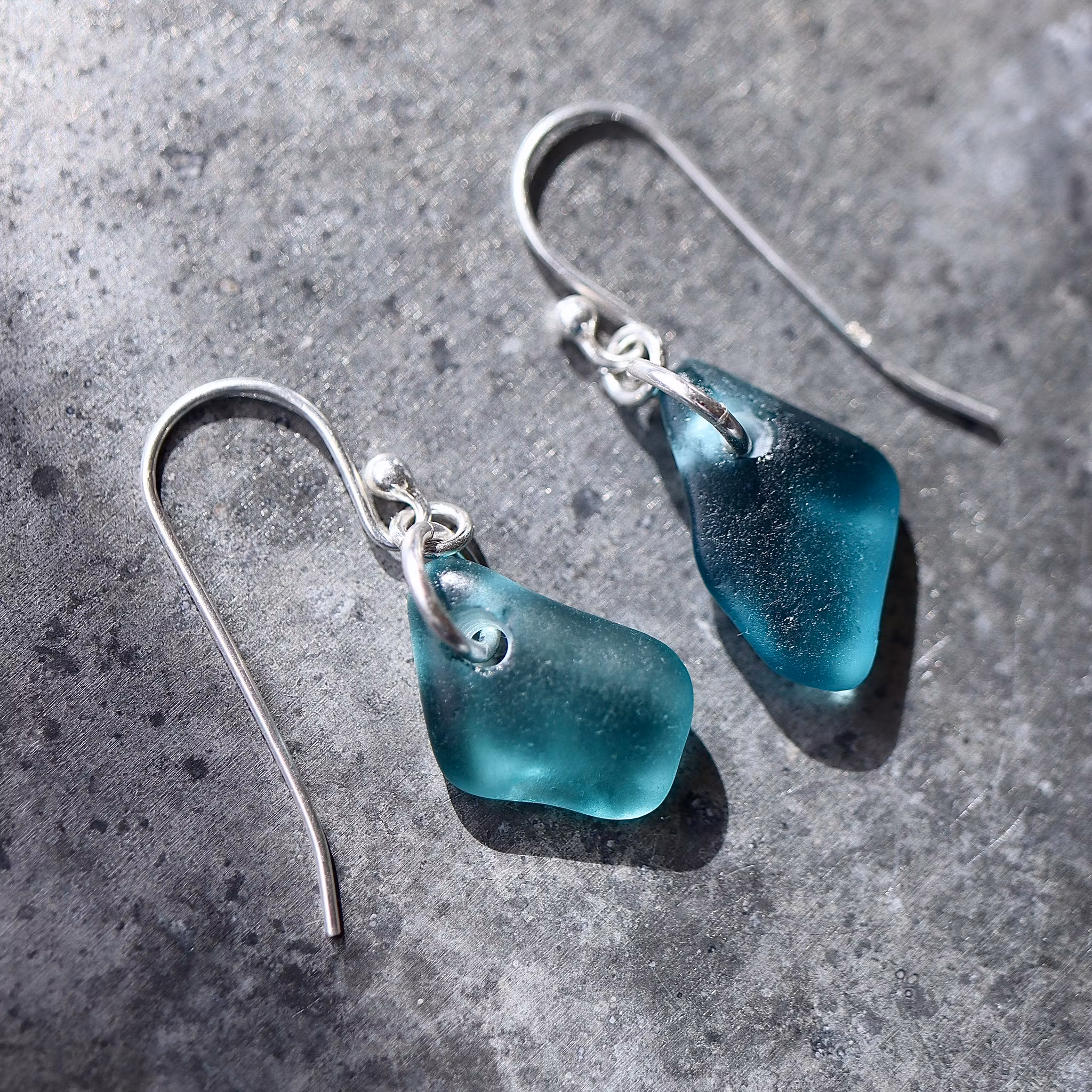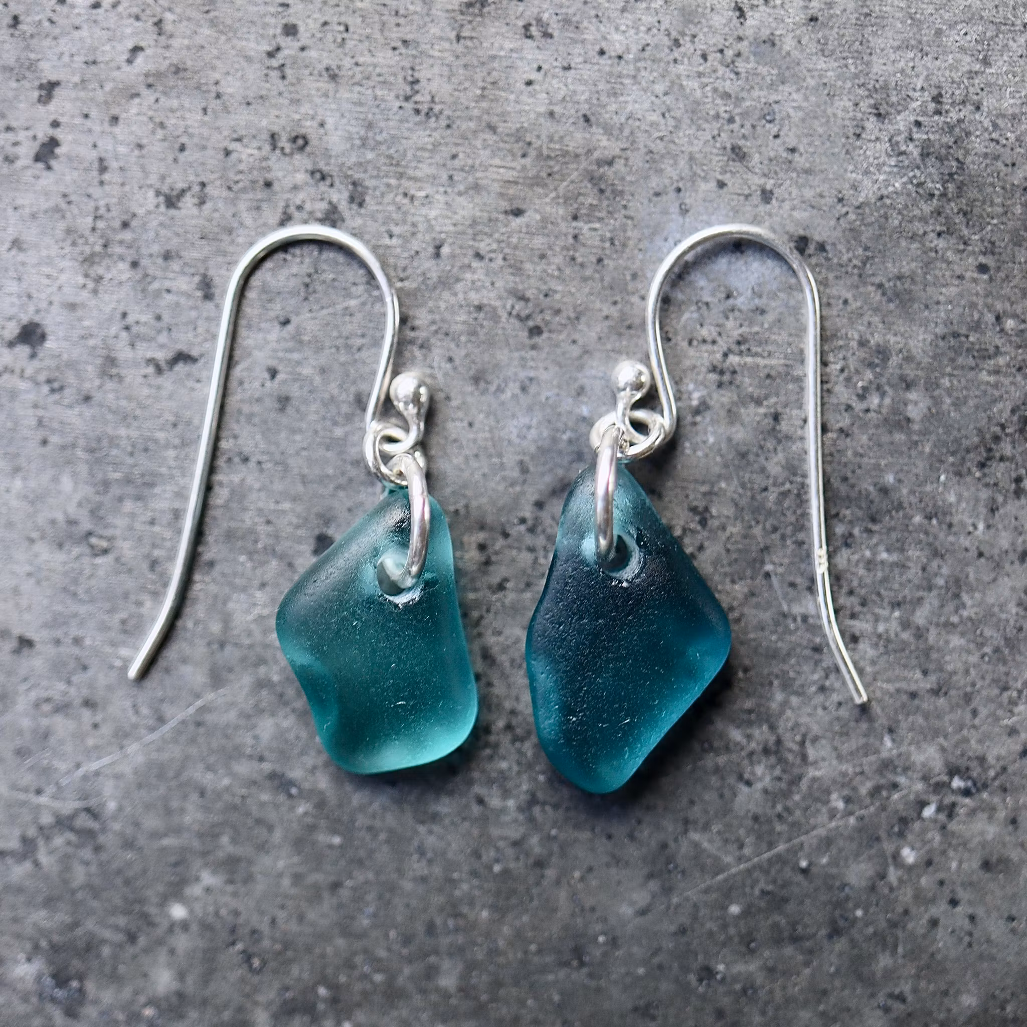 Observera att de två havsglasbitarna i paret inte är identiska, utan varierar en aning i form, tjocklek och färgnyans.