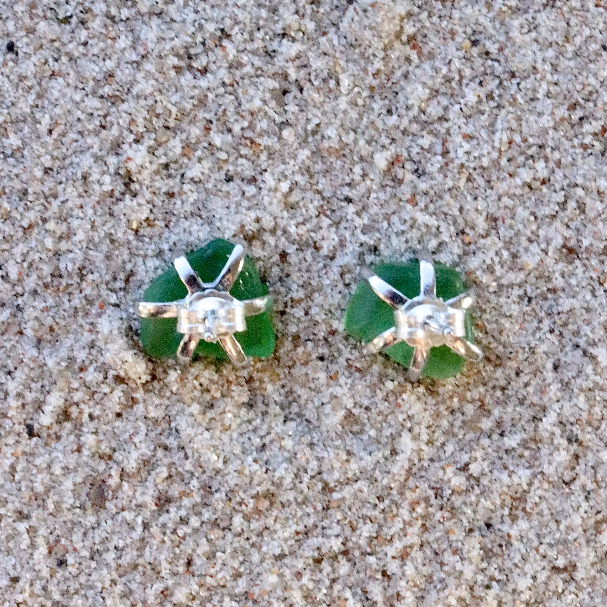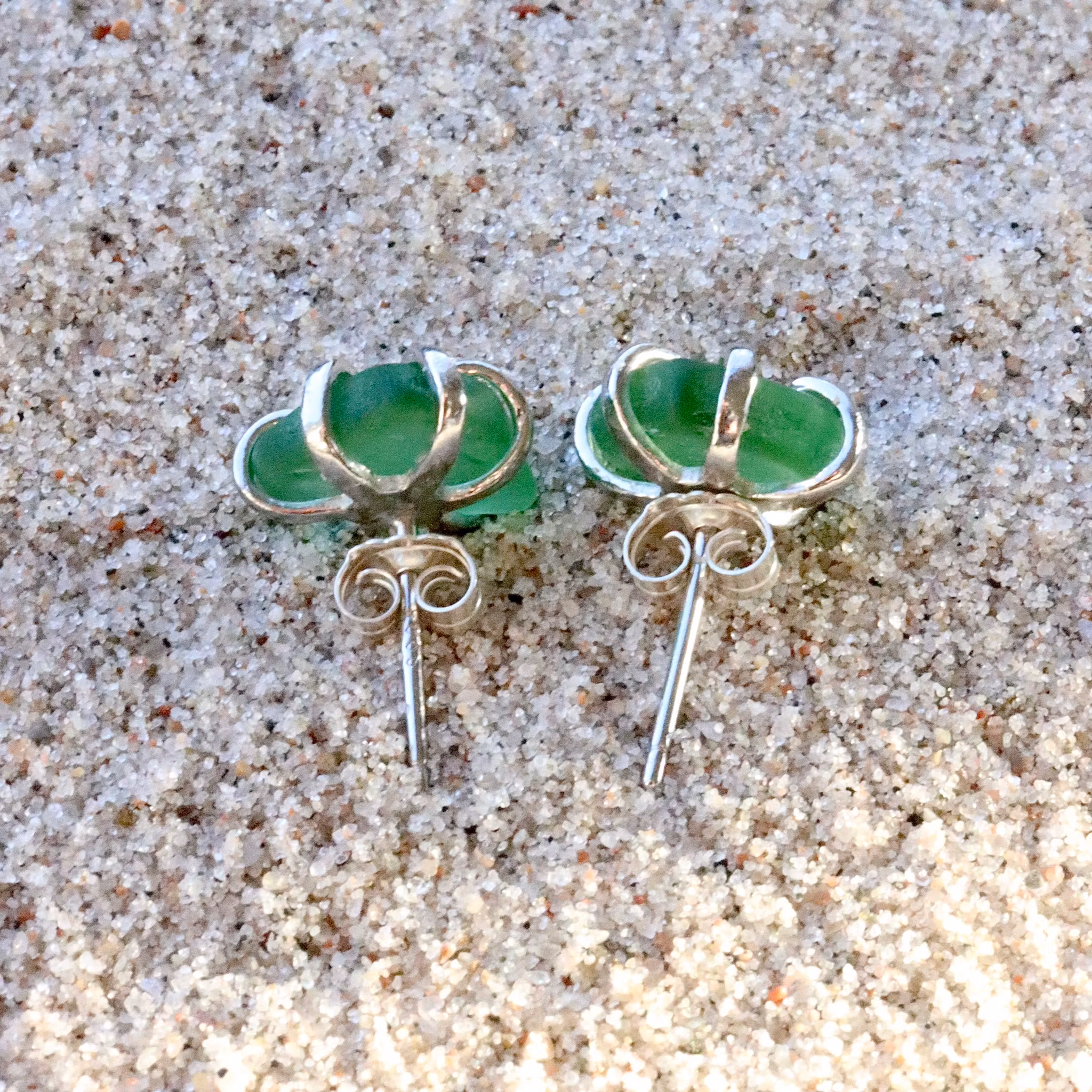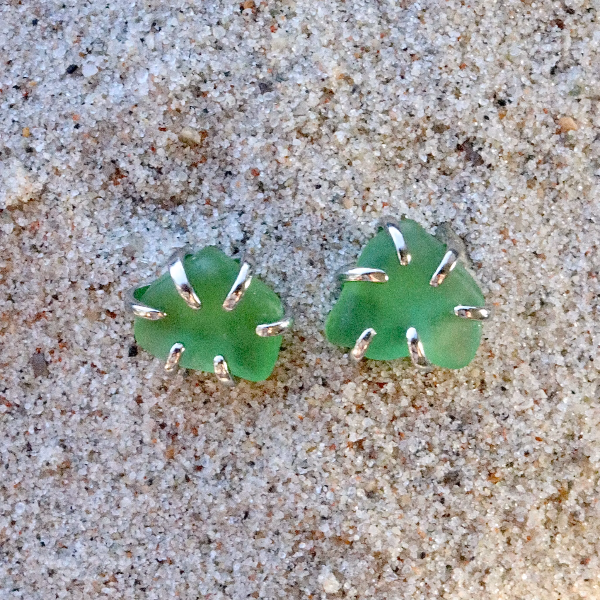 Observera att de två havsglasbitarna i paret inte är identiska, utan varierar en aning i form, tjocklek och färgnyans.