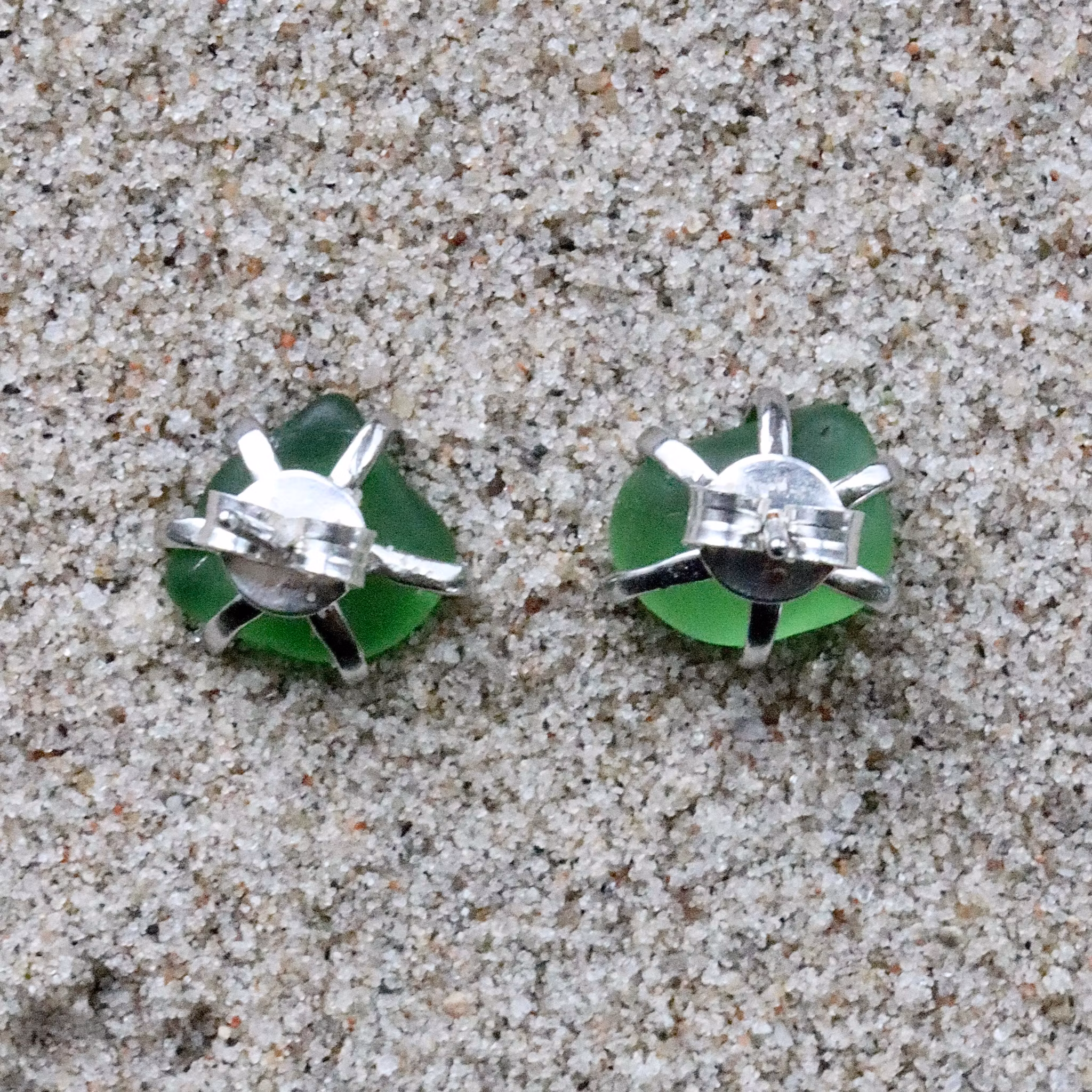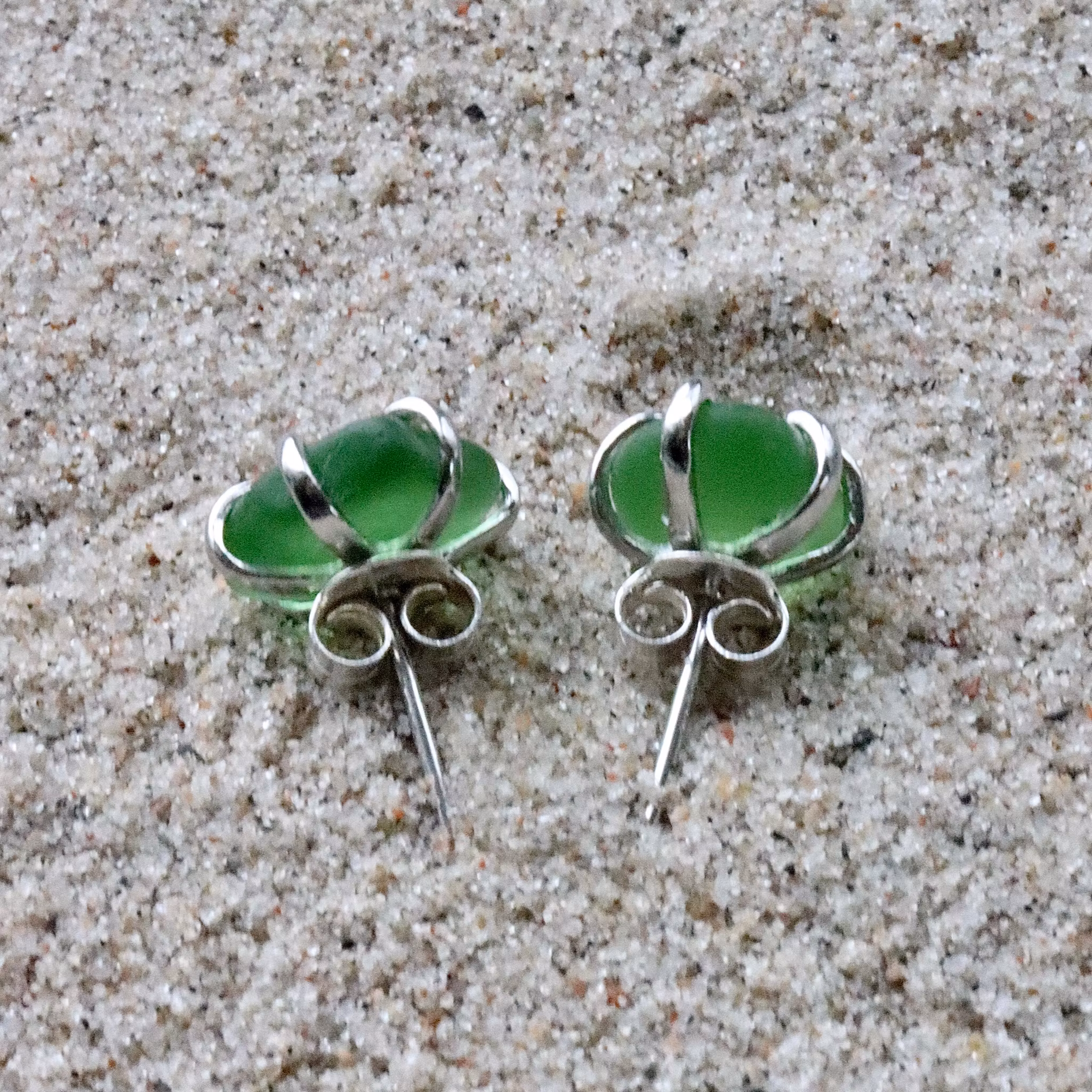 Observera att de två havsglasbitarna i paret inte är identiska, utan varierar en aning i form, tjocklek och färgnyans.
