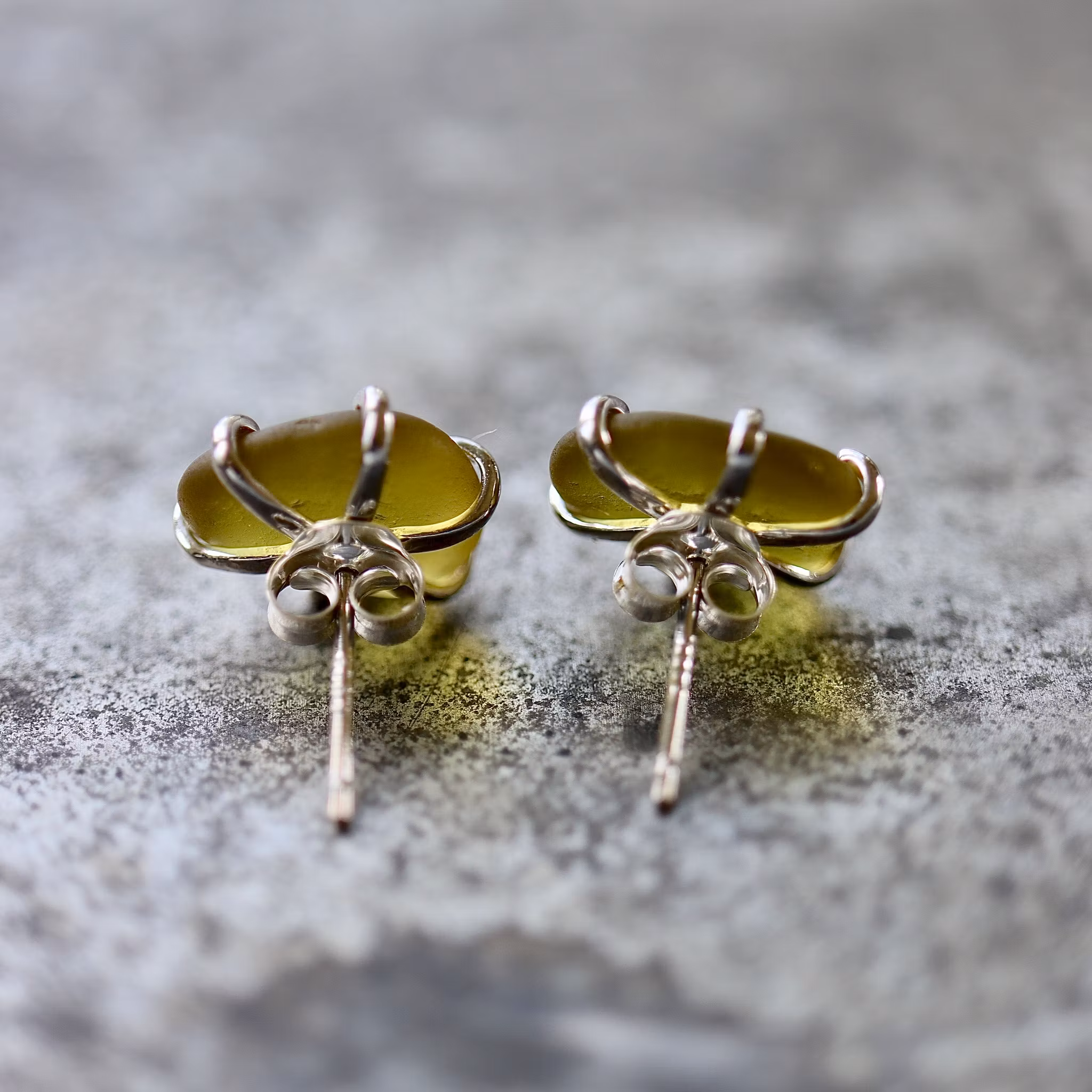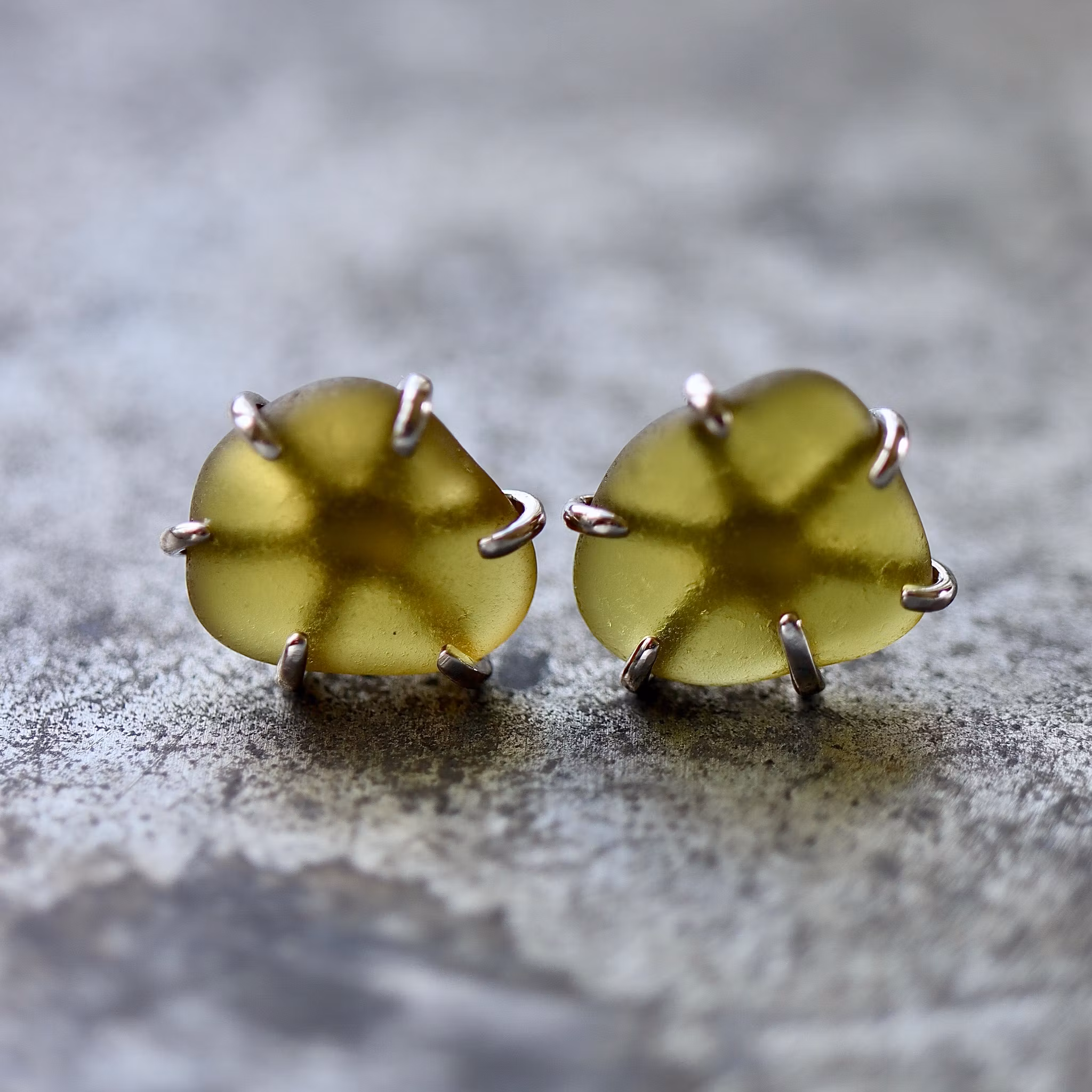 Observera att de två havsglasbitarna i paret inte är identiska, utan varierar en aning i form, tjocklek och färgnyans.