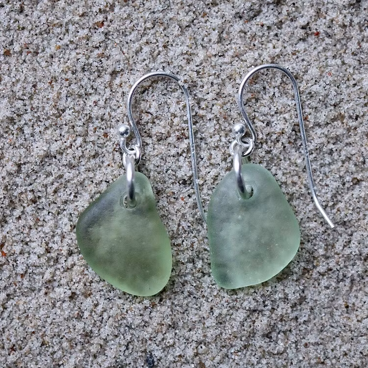 Observera att de två havsglasbitarna i paret inte är identiska, utan varierar en aning i form, tjocklek och färgnyans.
