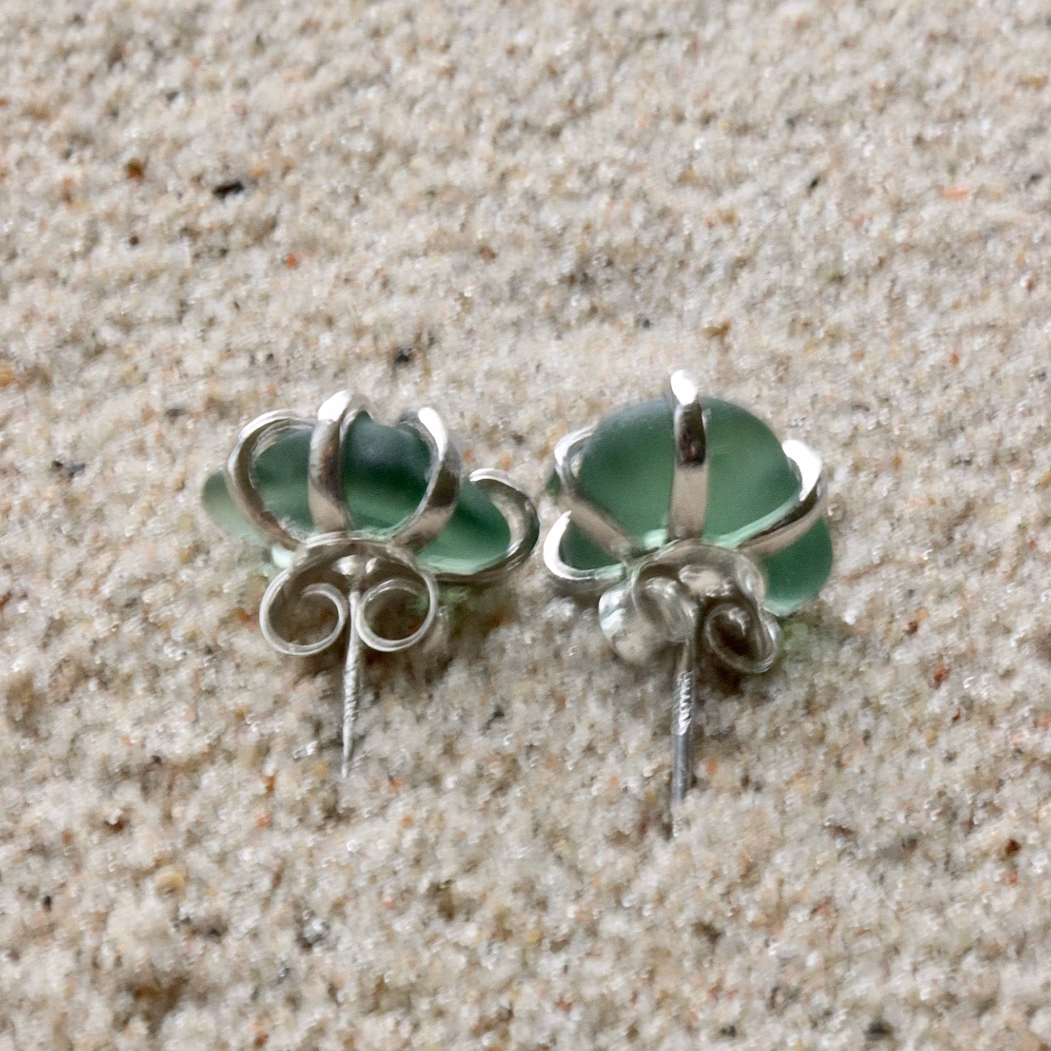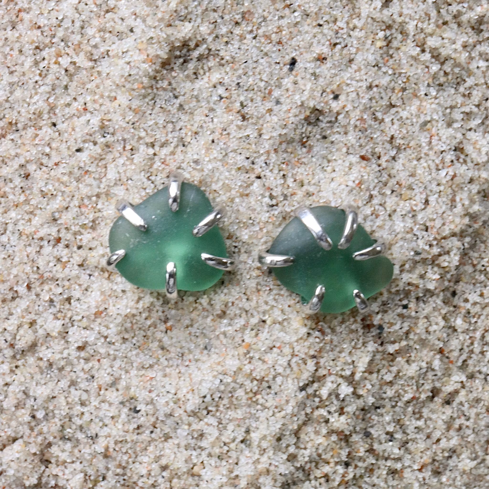 Observera att de två havsglasbitarna i paret inte är identiska, utan varierar en aning i form, tjocklek och färgnyans.