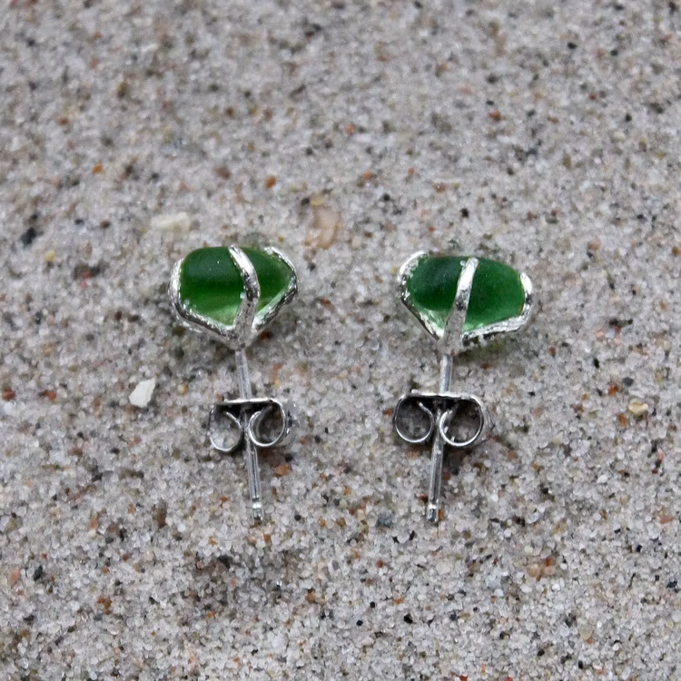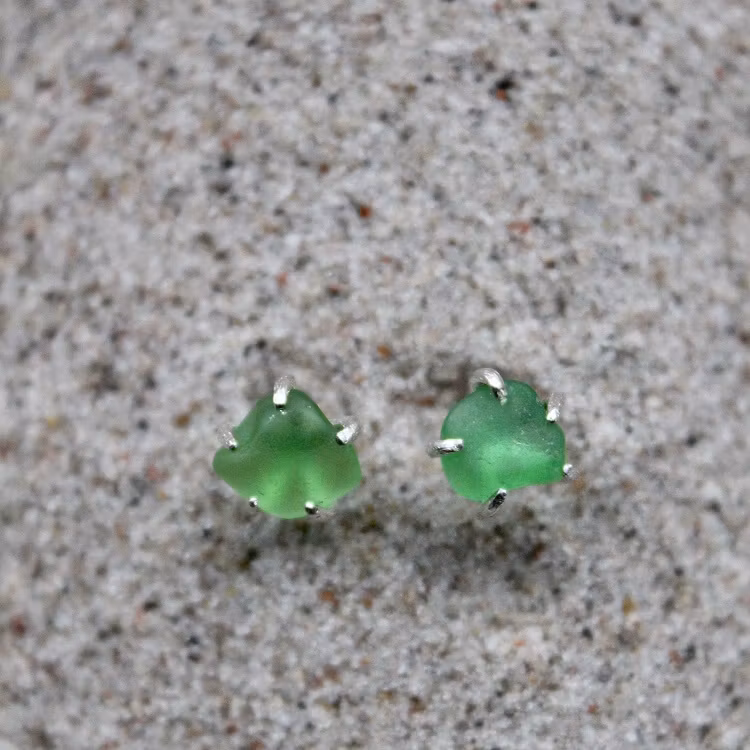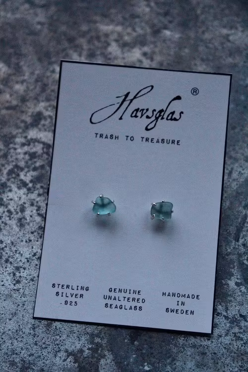 Observera att de två havsglasbitarna i paret inte är identiska, utan varierar en aning i form, tjocklek och färgnyans.