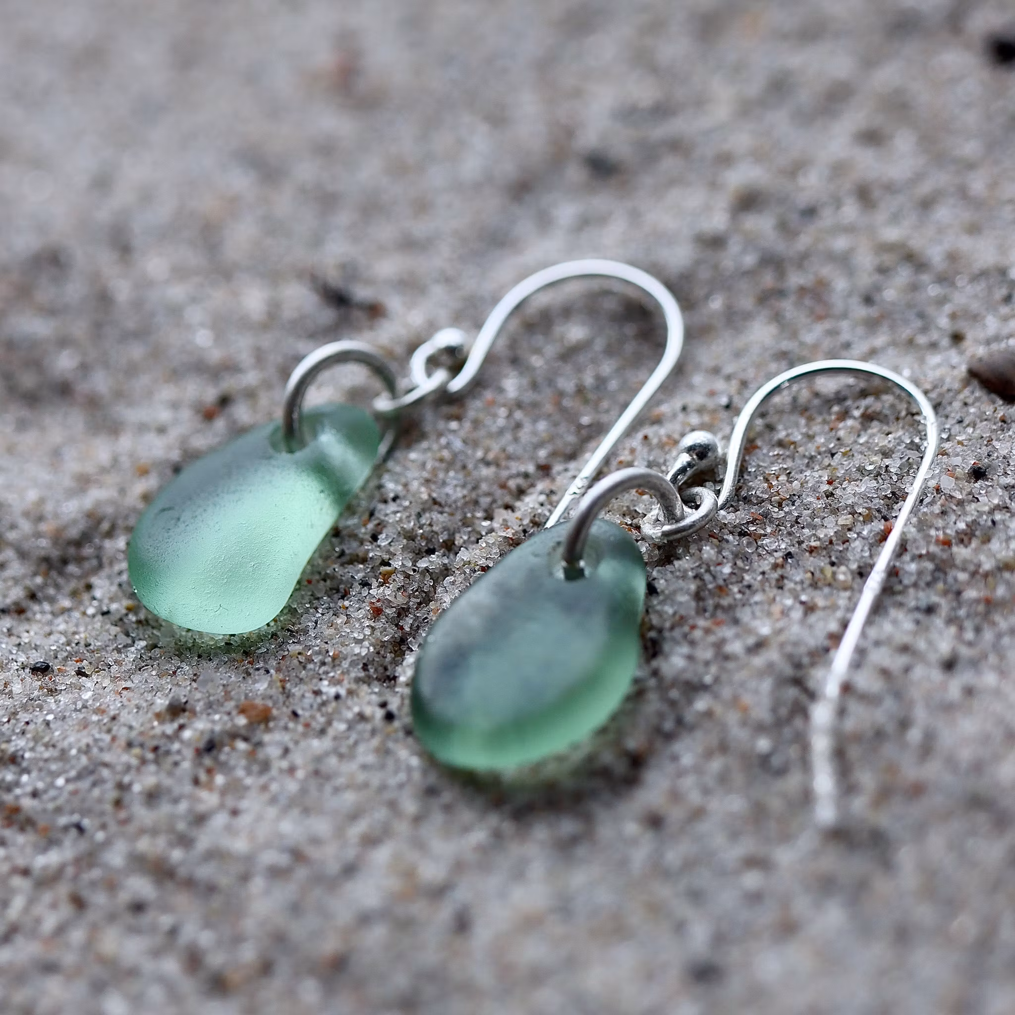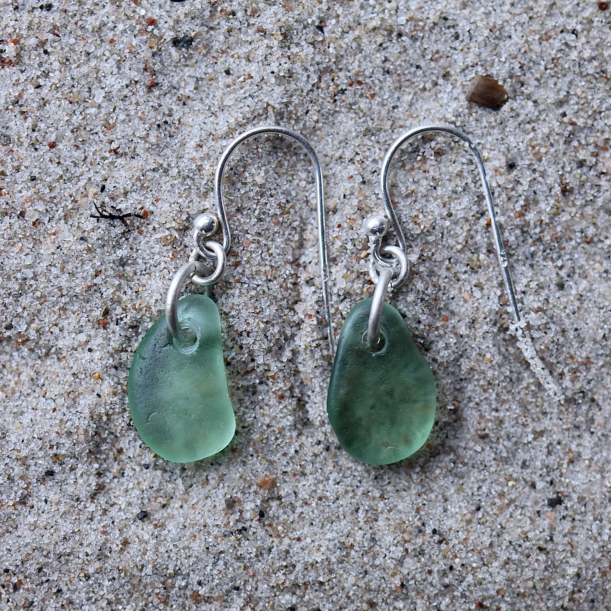 Observera att de två havsglasbitarna i paret inte är identiska, utan varierar en aning i form, tjocklek och färgnyans.