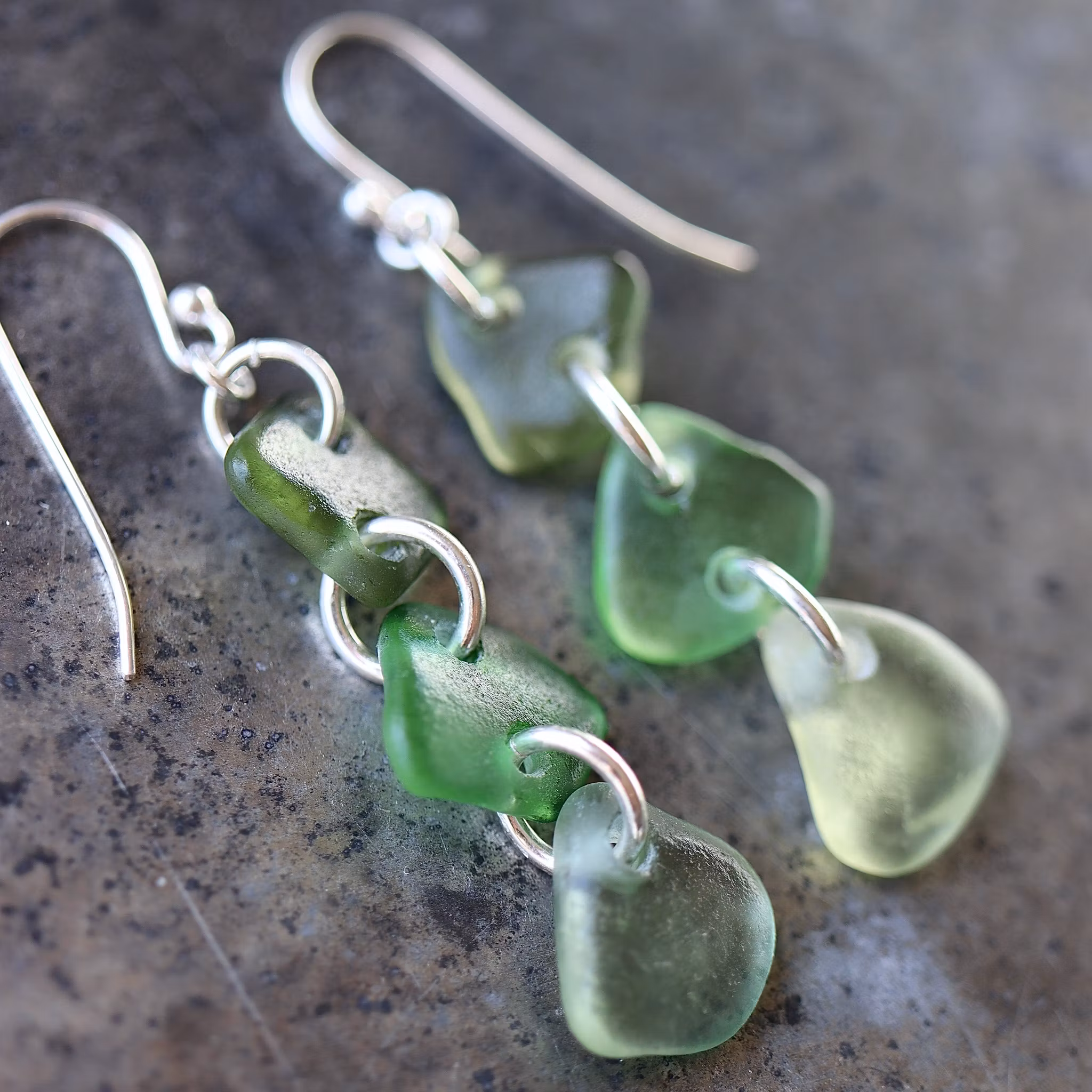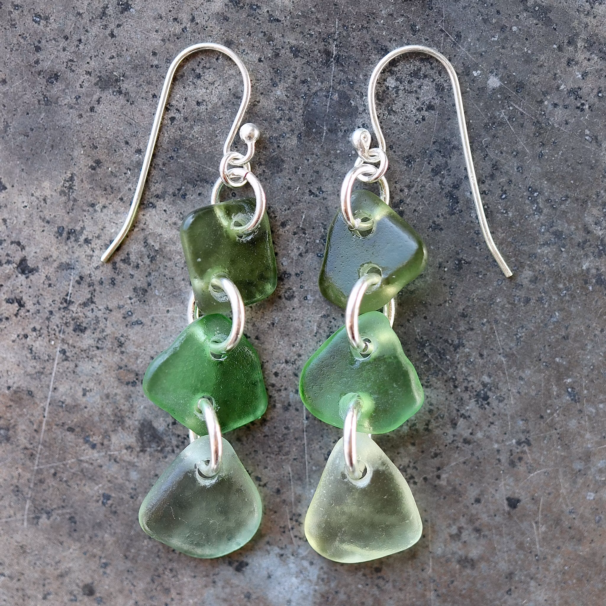 Observera att havsglasbitarna i paret inte är identiska, utan varierar en aning i form, tjocklek och färgnyans.