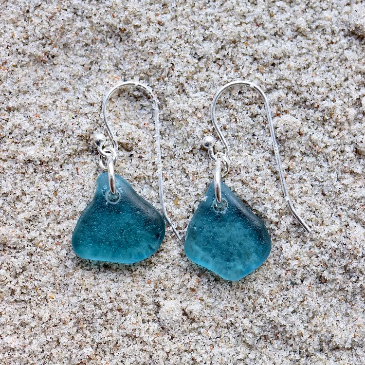 Observera att de två havsglasbitarna i paret inte är identiska, utan varierar en aning i form, tjocklek och färgnyans.