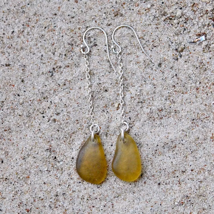 Observera att de två havsglasbitarna i paret inte är identiska, utan varierar en aning i form, tjocklek och färgnyans.
