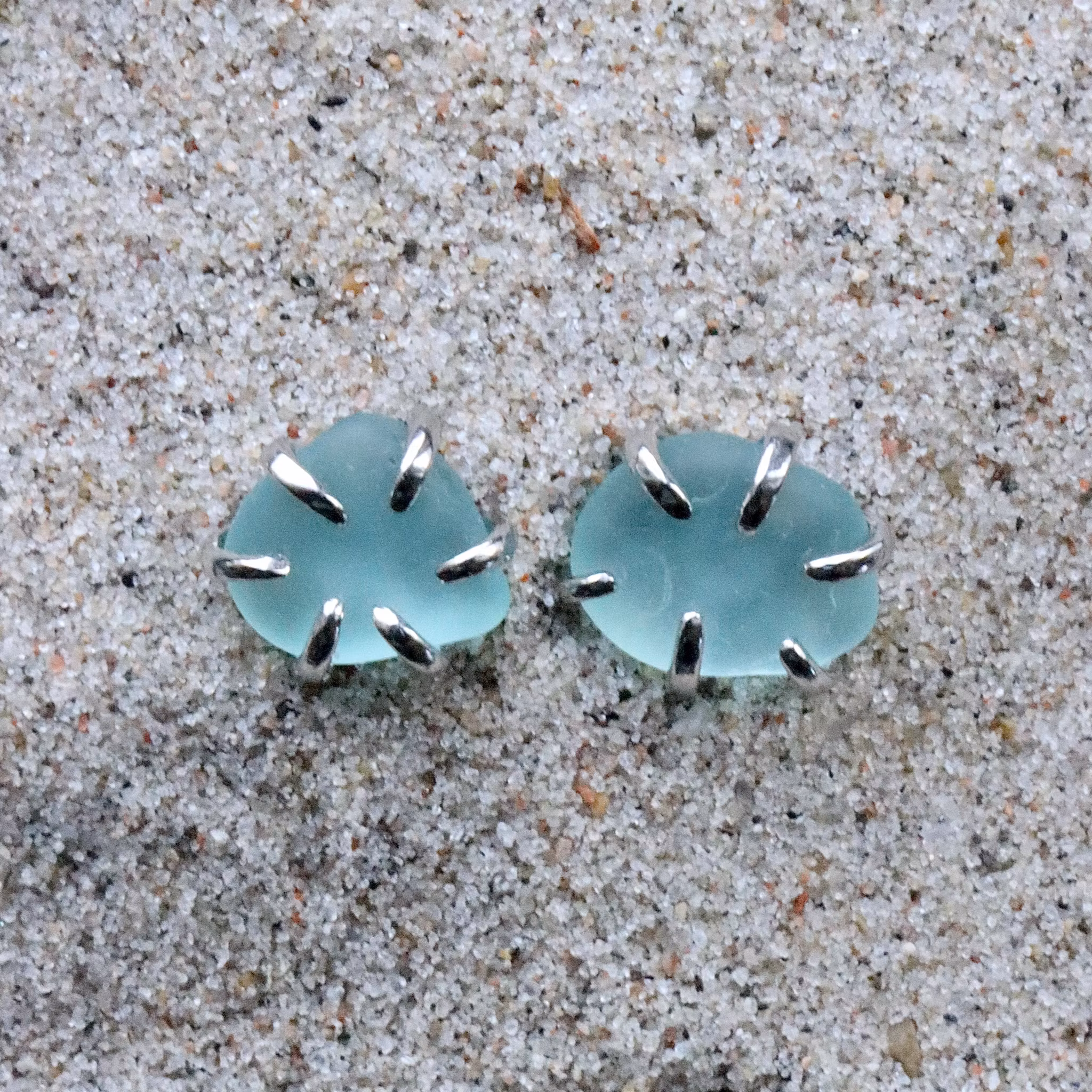 Observera att de två havsglasbitarna i paret inte är identiska, utan varierar en aning i form, tjocklek och färgnyans.