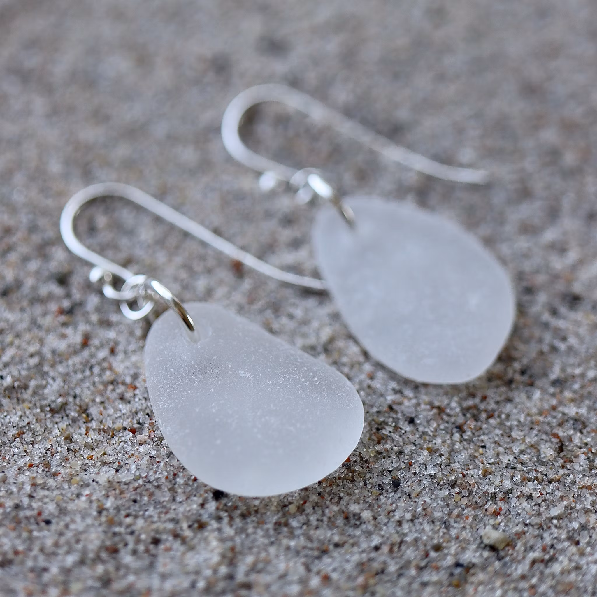 Observera att de två havsglasbitarna i paret inte är identiska, utan varierar en aning i form, tjocklek och färgnyans.