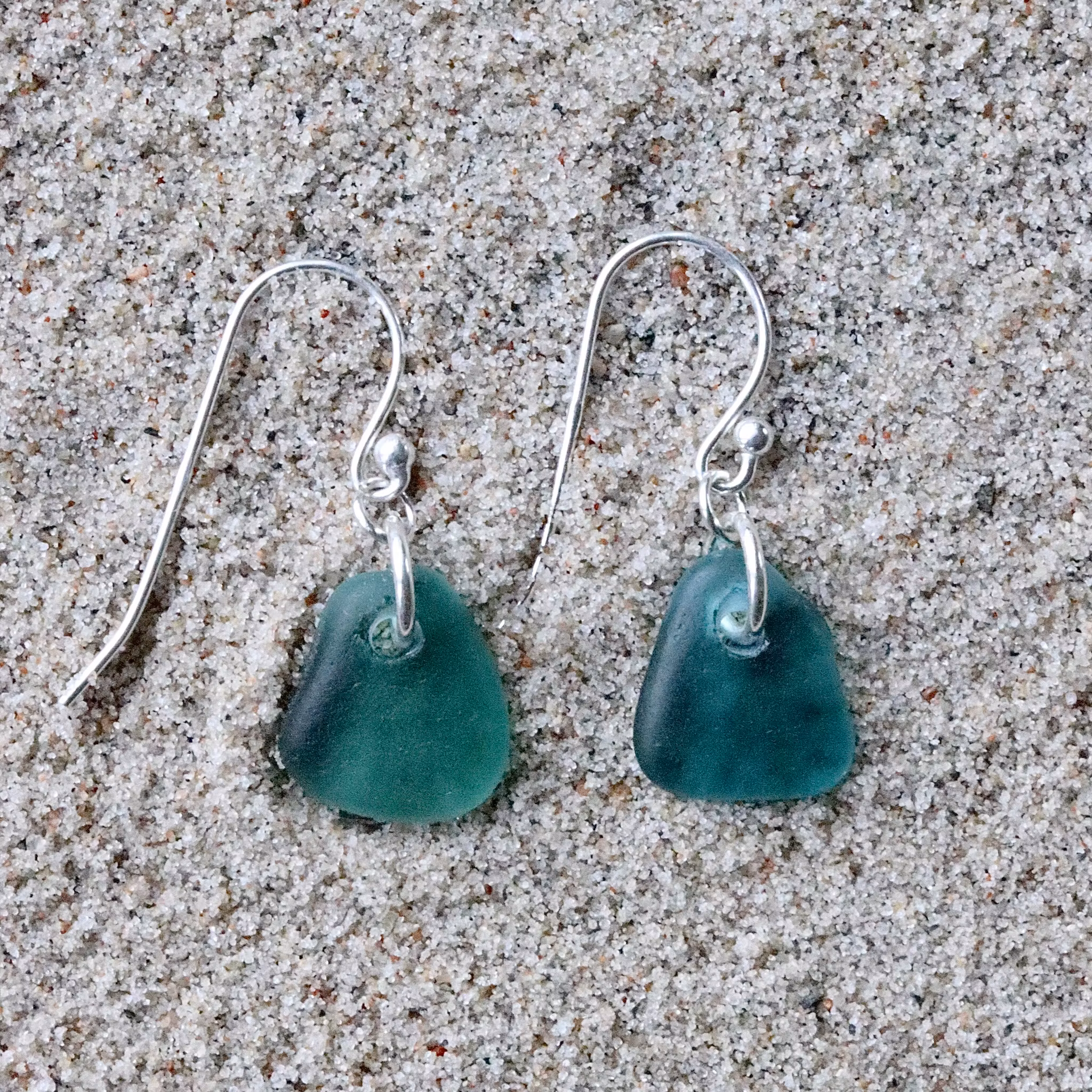 Observera att de två havsglasbitarna i paret inte är identiska, utan varierar en aning i form, tjocklek och färgnyans.