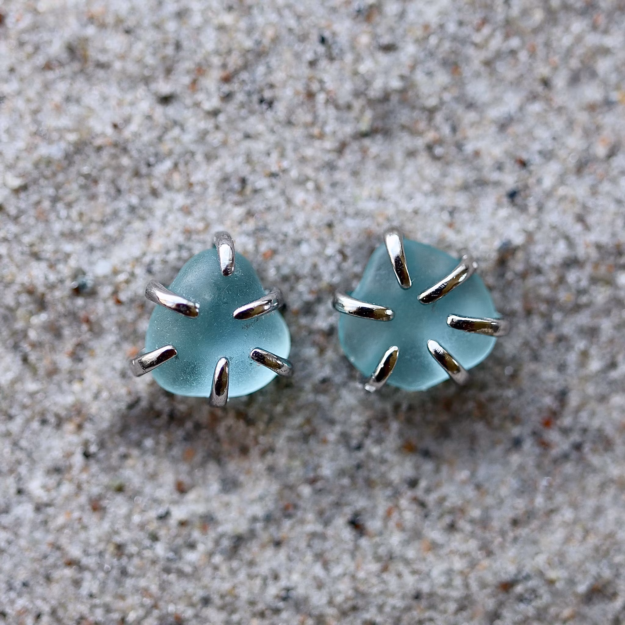 Observera att de två havsglasbitarna i paret inte är identiska, utan varierar en aning i form, tjocklek och färgnyans.
