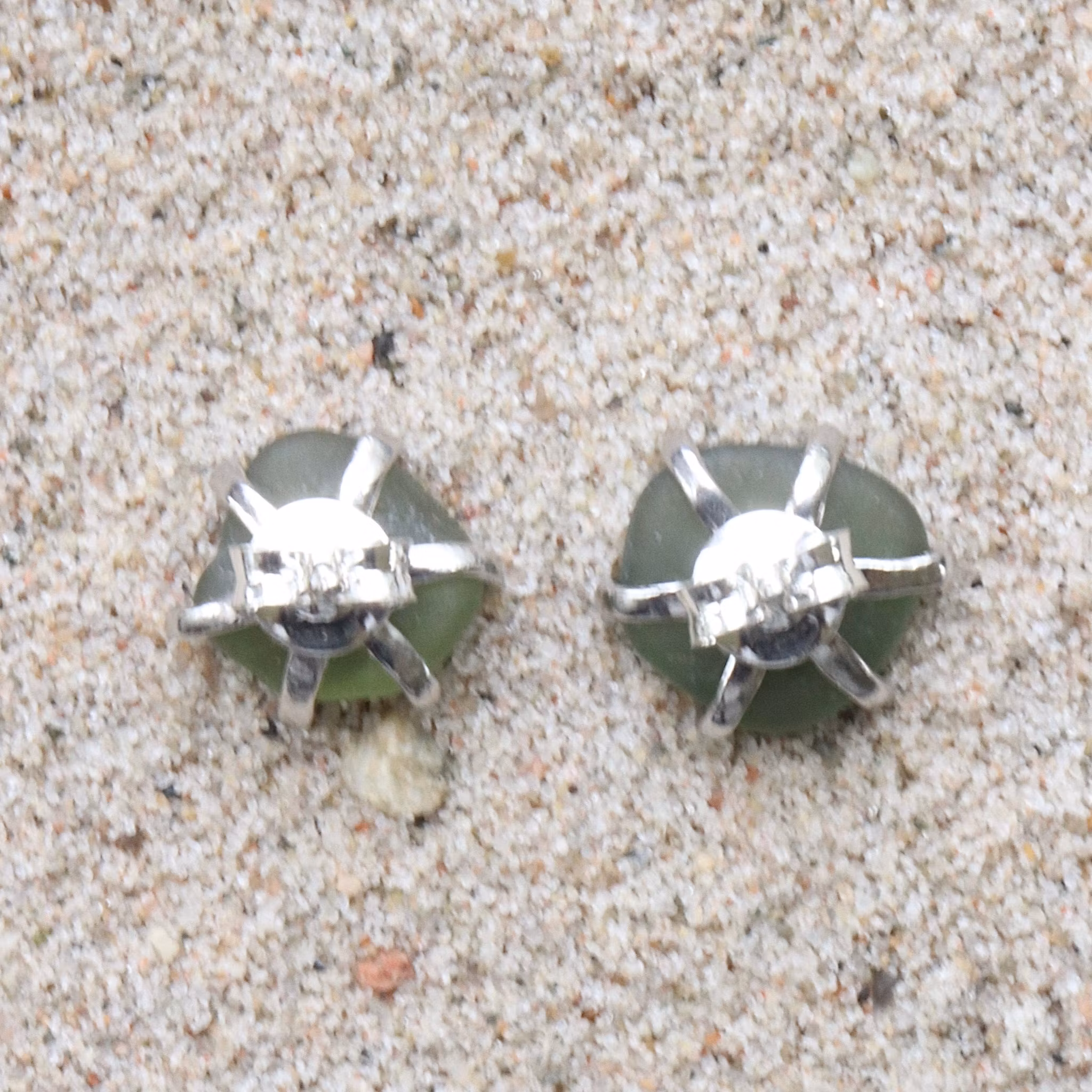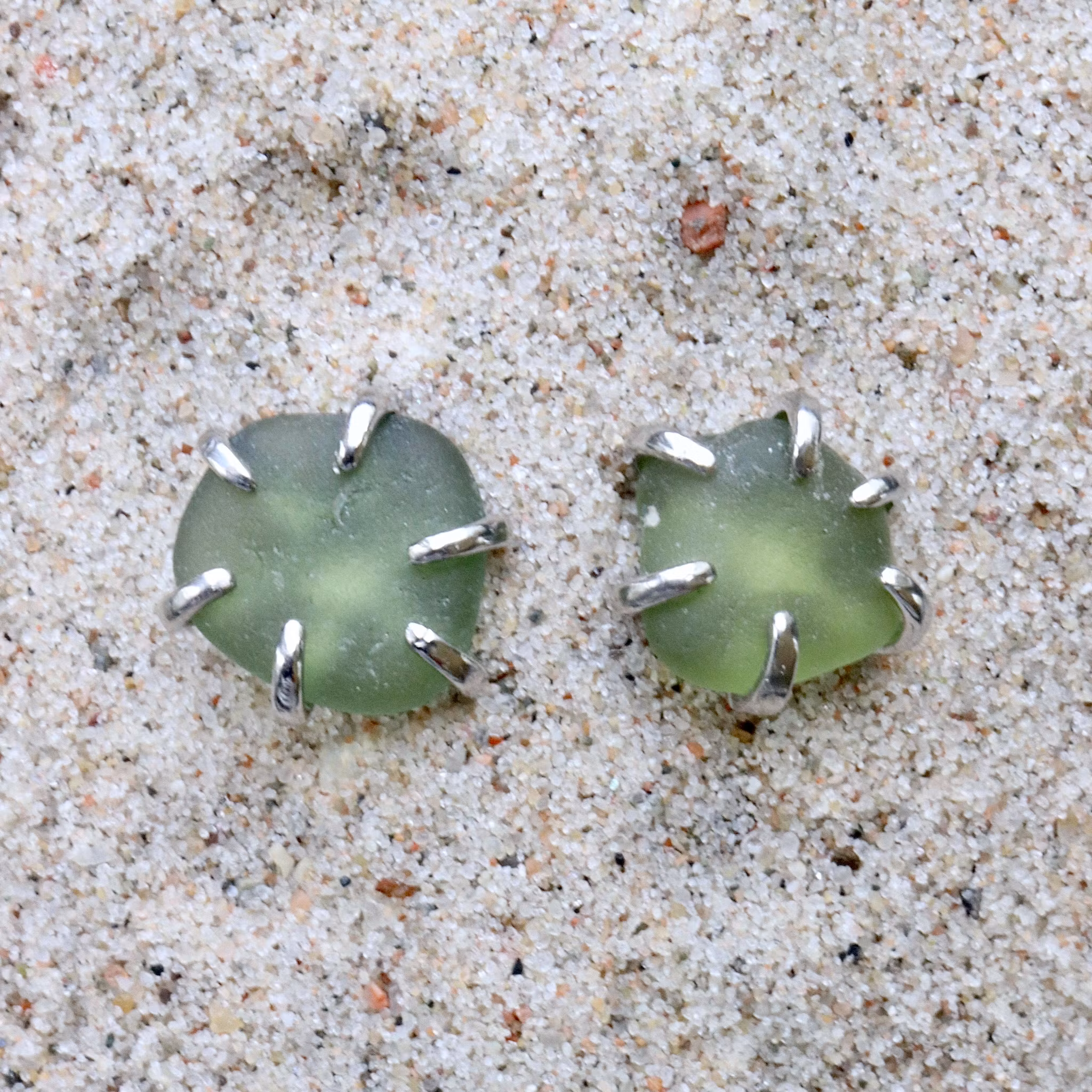 Observera att de två havsglasbitarna i paret inte är identiska, utan varierar en aning i form, tjocklek och färgnyans.