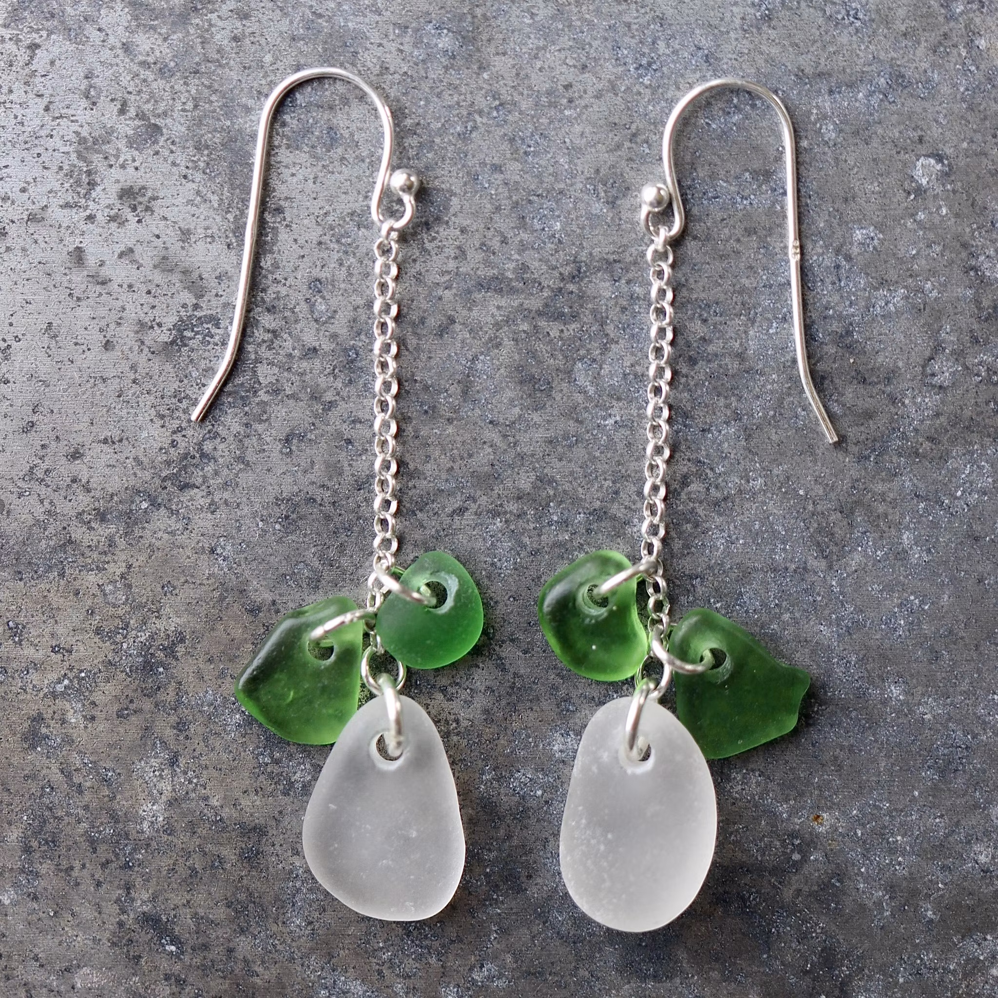 Observera att havsglasbitarna i paret inte är identiska, utan varierar en aning i form, tjocklek och färgnyans.