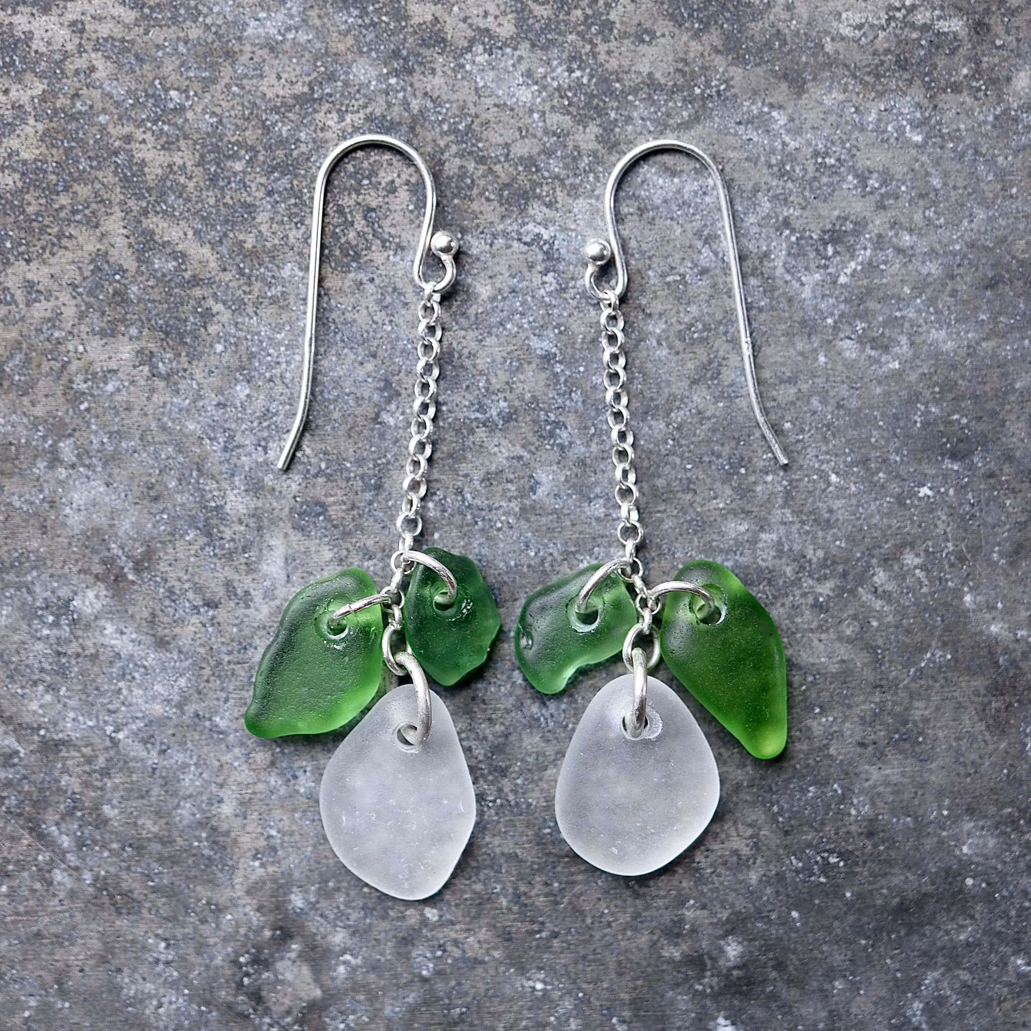 Observera att havsglasbitarna i paret inte är identiska, utan varierar en aning i form, tjocklek och färgnyans.