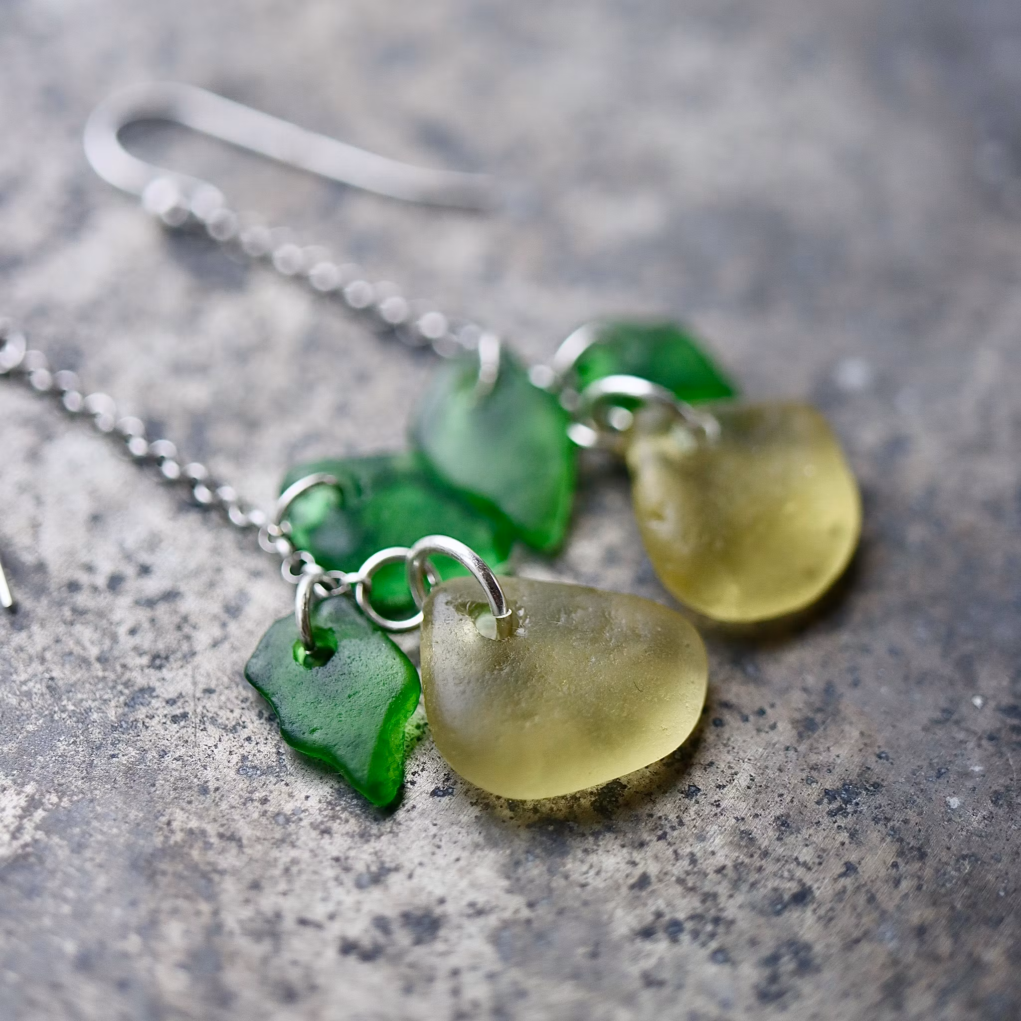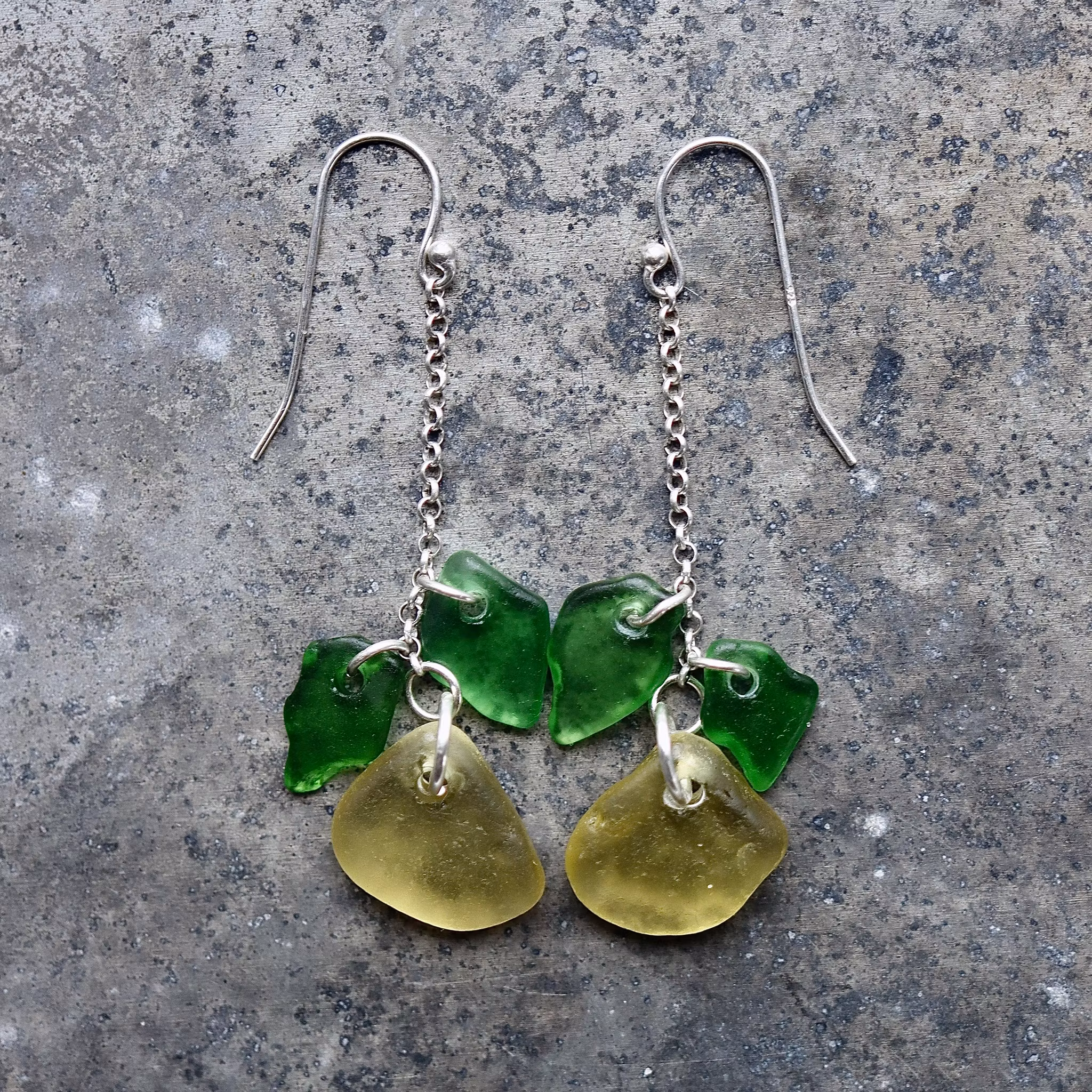 Observera att havsglasbitarna i paret inte är identiska, utan varierar en aning i form, tjocklek och färgnyans.
