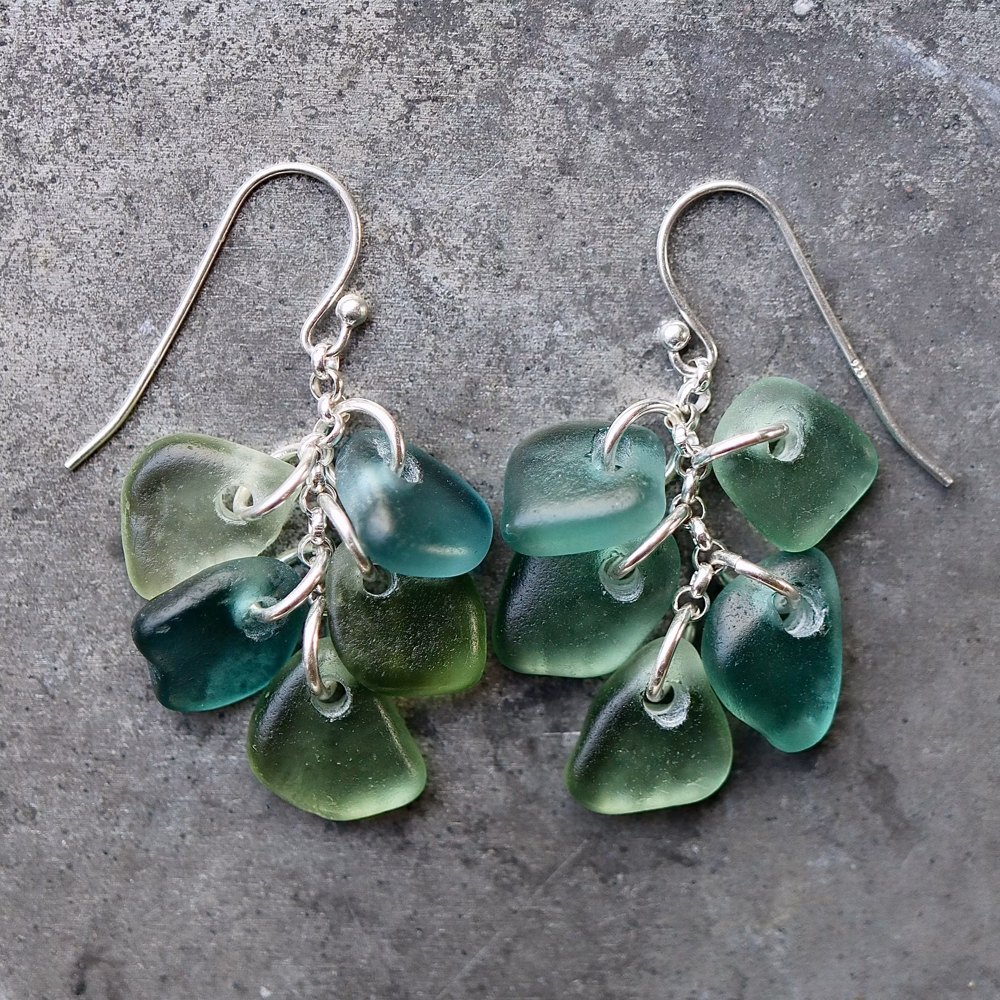 Observera att havsglasbitarna i paret inte är identiska, utan varierar en aning i form, tjocklek och färgnyans.
