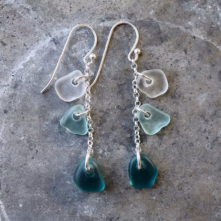 Par med sex matchande havsglas, örkrokar och kedja av äkta silver.